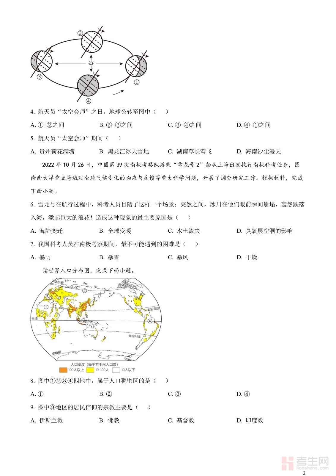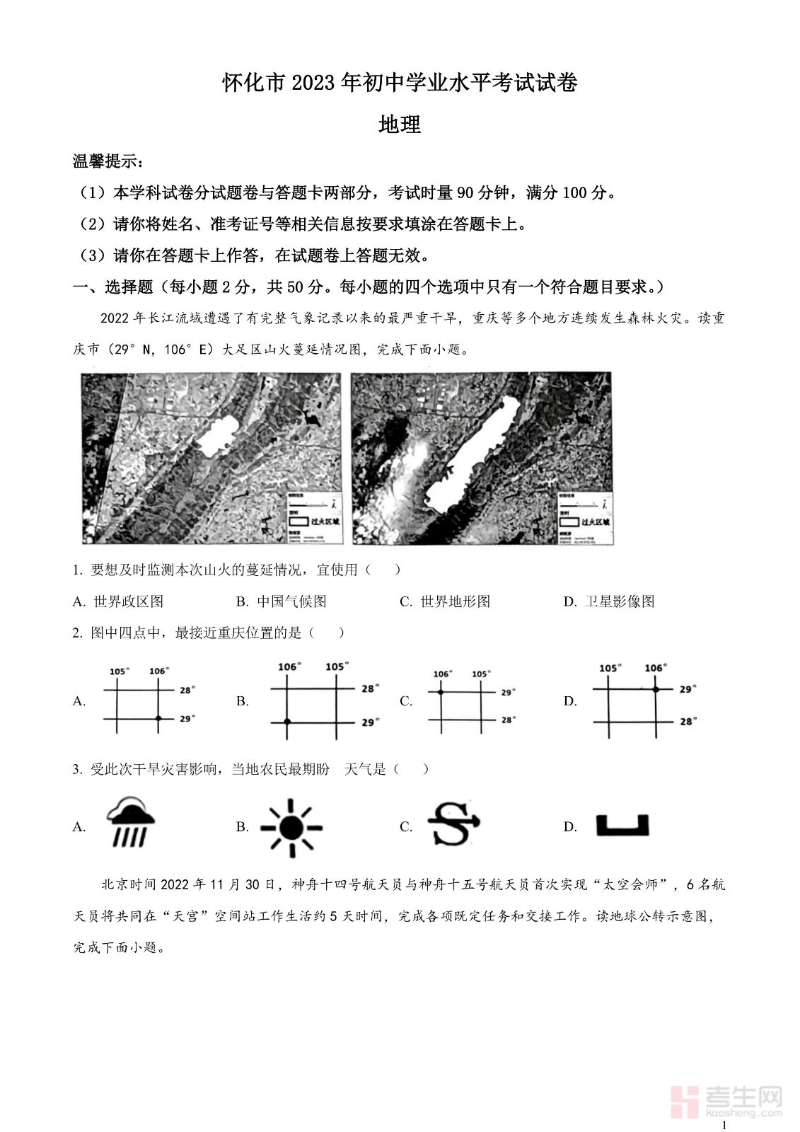 2023年湖南省怀化市中考地理真题 (原卷版)