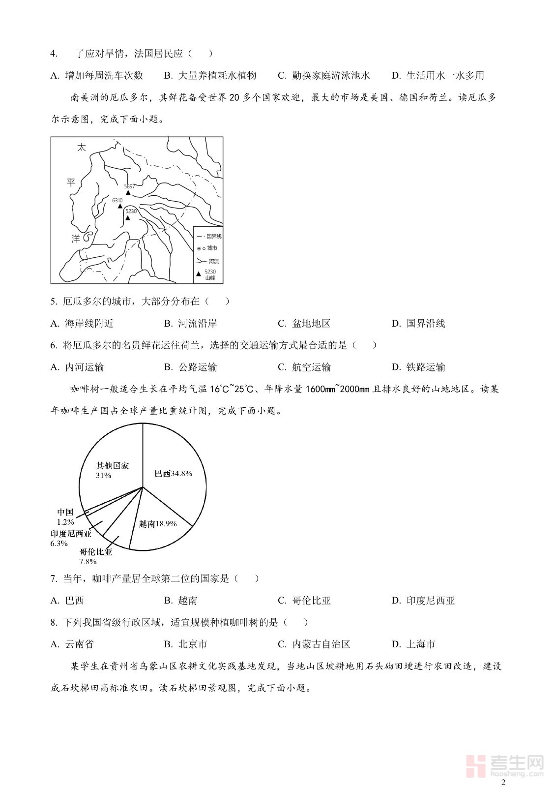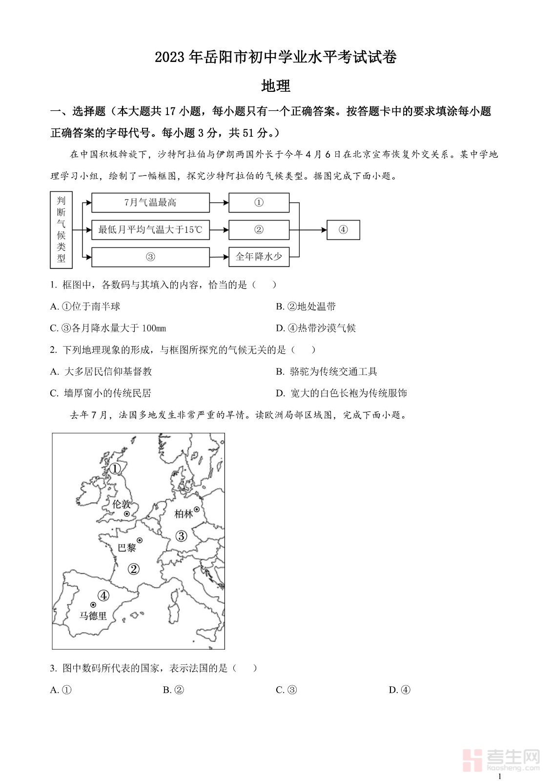2023年湖南省岳阳市中考地理真题(原卷版)