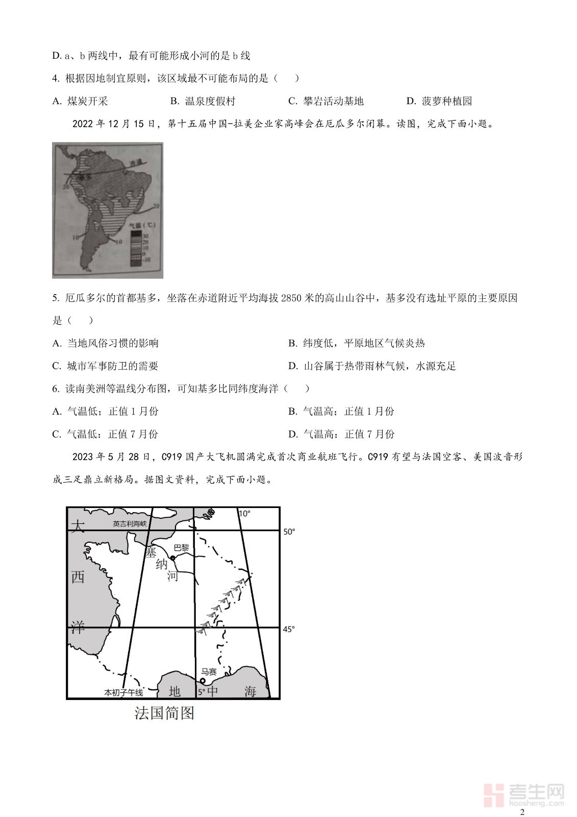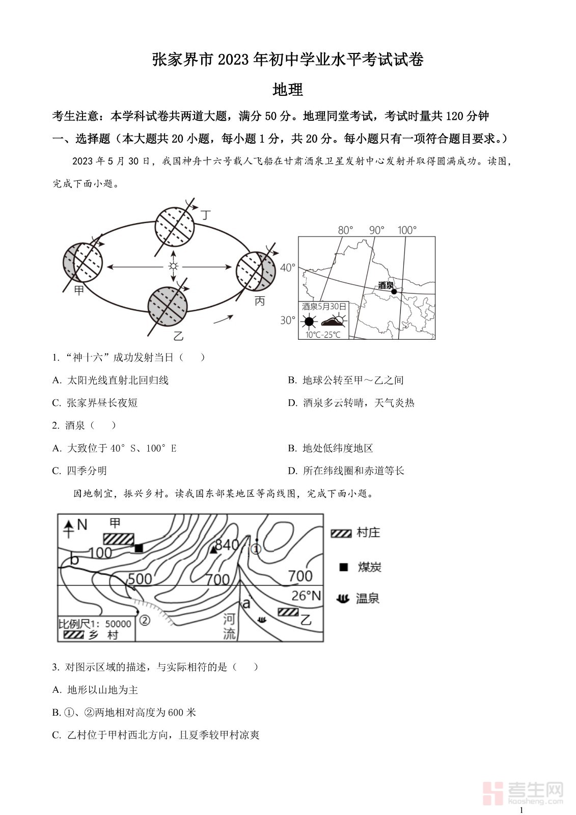 2023年湖南省张家界市中考地理真题(原卷版)