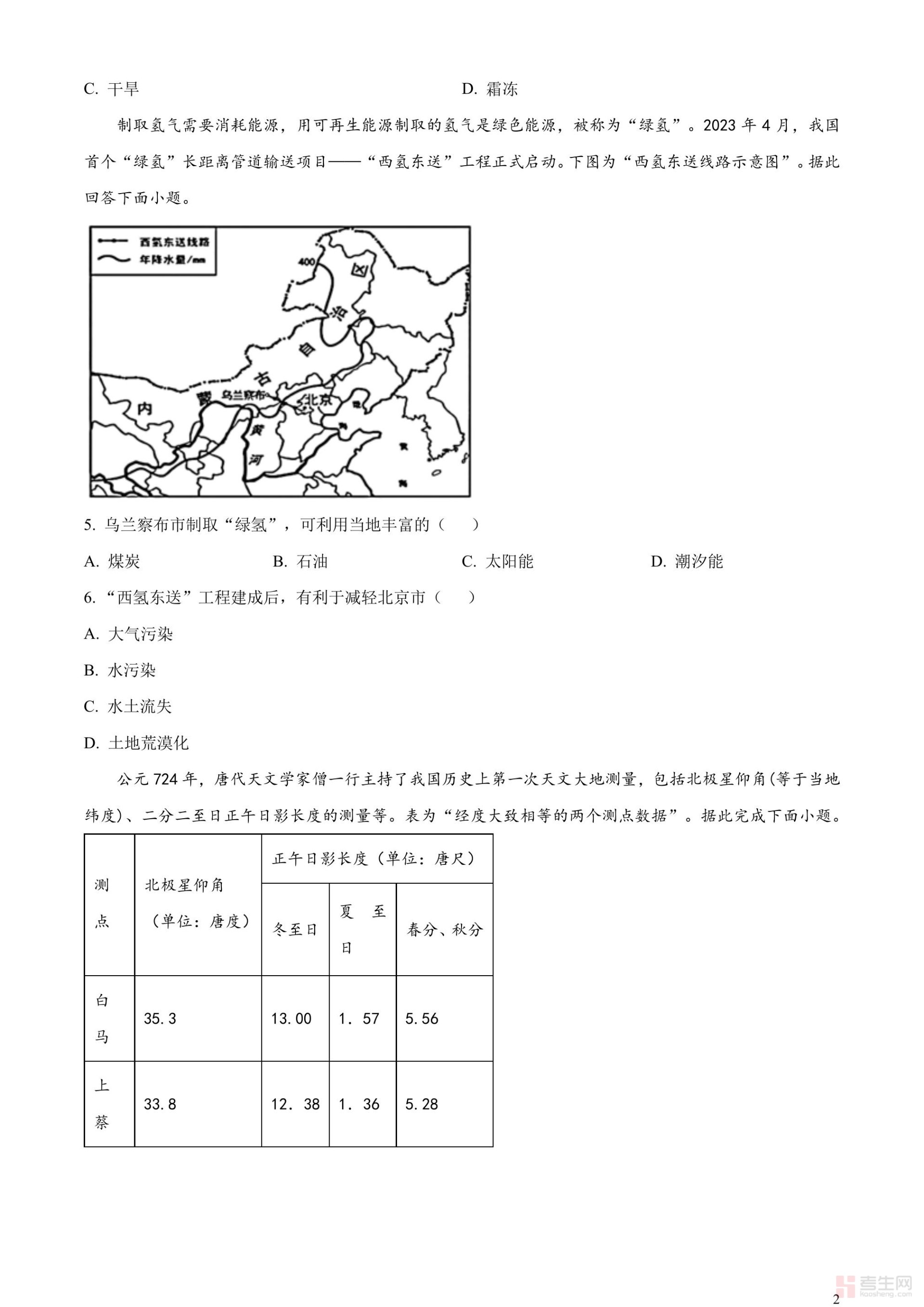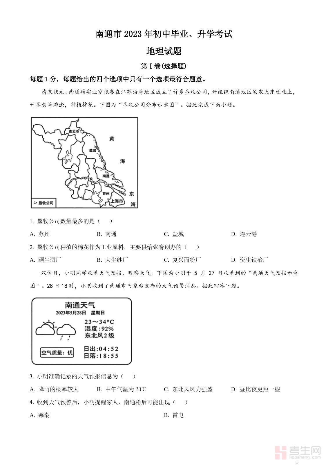 2023年江苏省南通市中考地理真题(原卷版)
