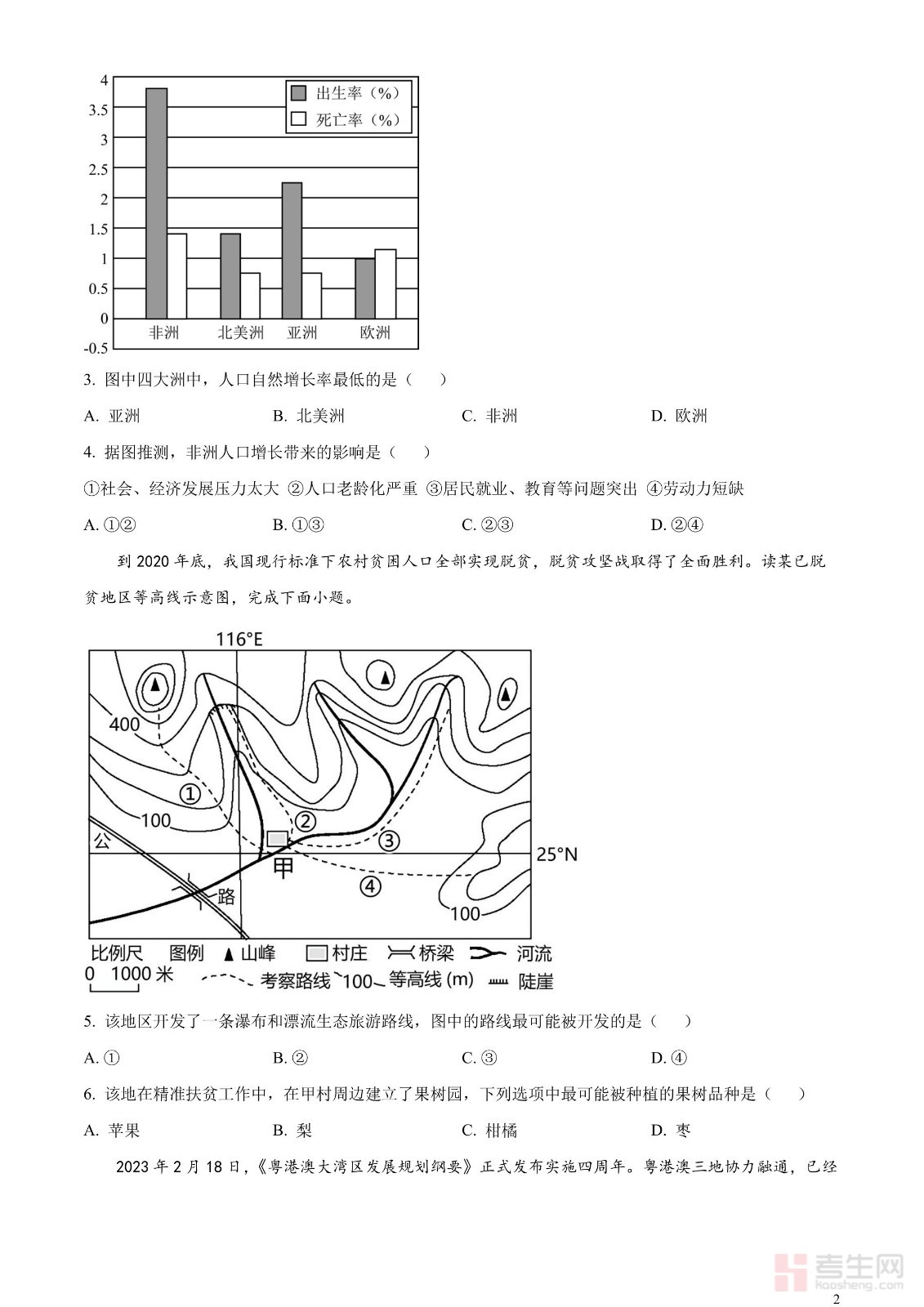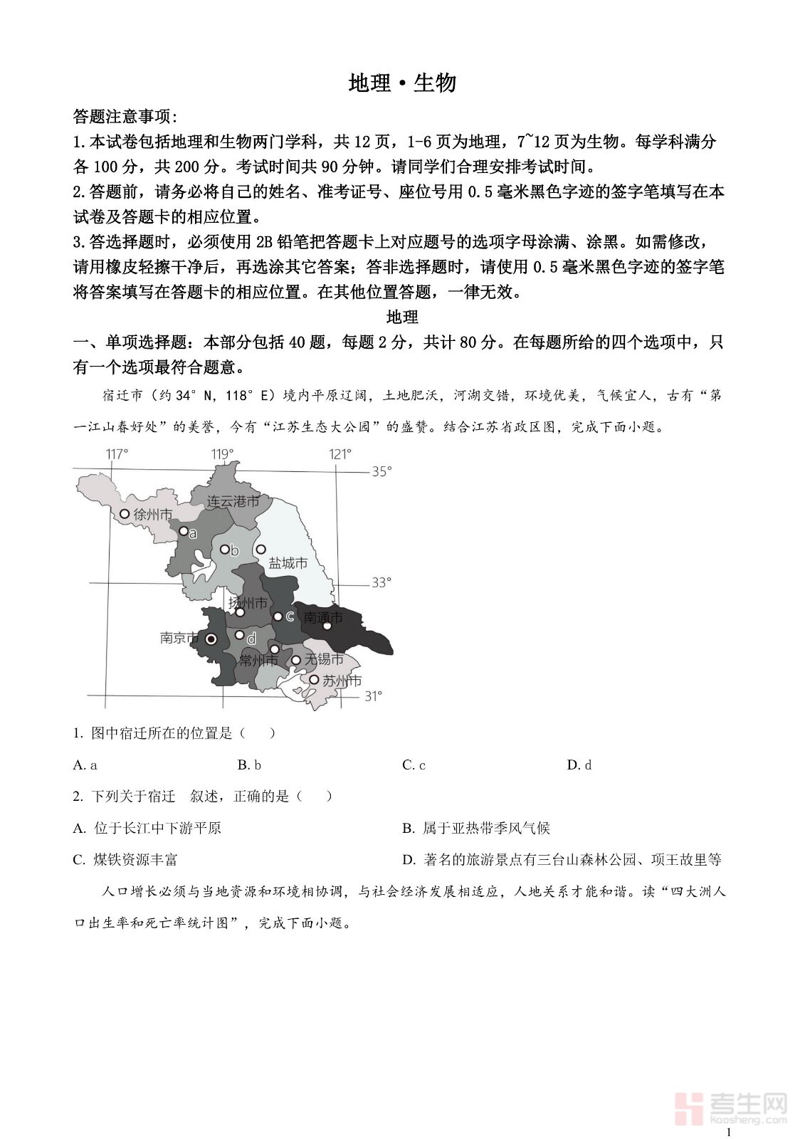 2023年江苏省宿迁市中考地理真题(原卷版)