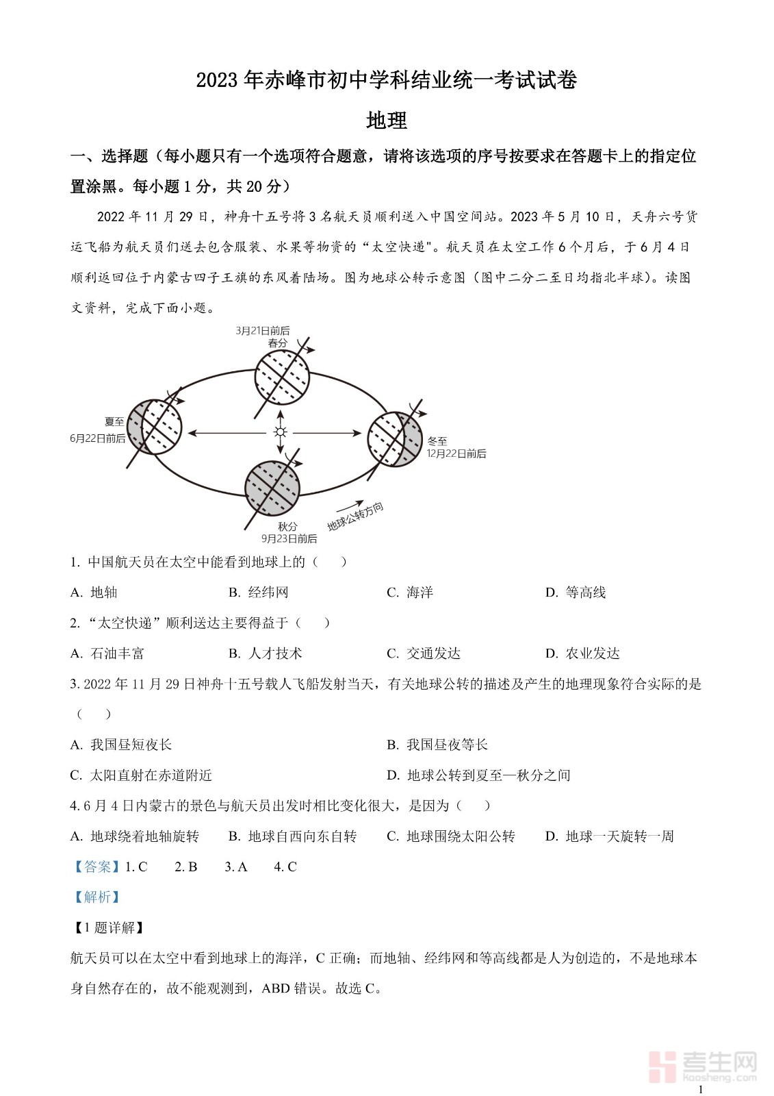 2023年内蒙古赤峰市中考地理真题(解析版)