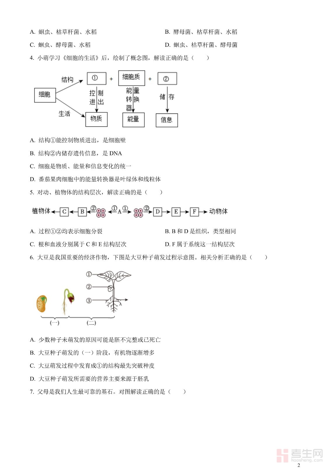 2023年湖北省宜昌市中考生物真题(原卷版)