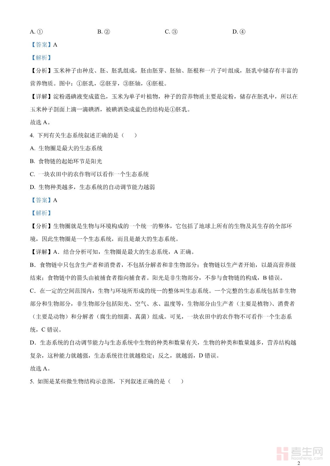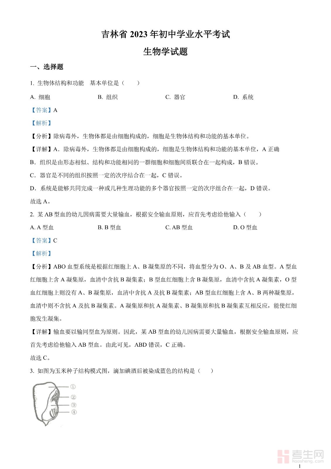 2023年吉林省中考生物真题(解析版)