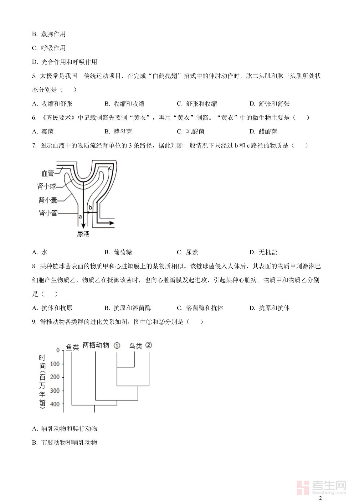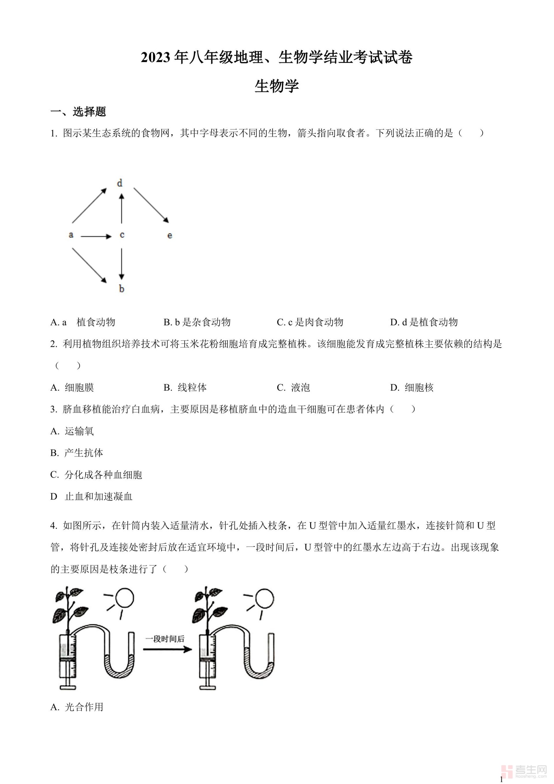 2023年内蒙古包头市中考生物真题(原卷版)