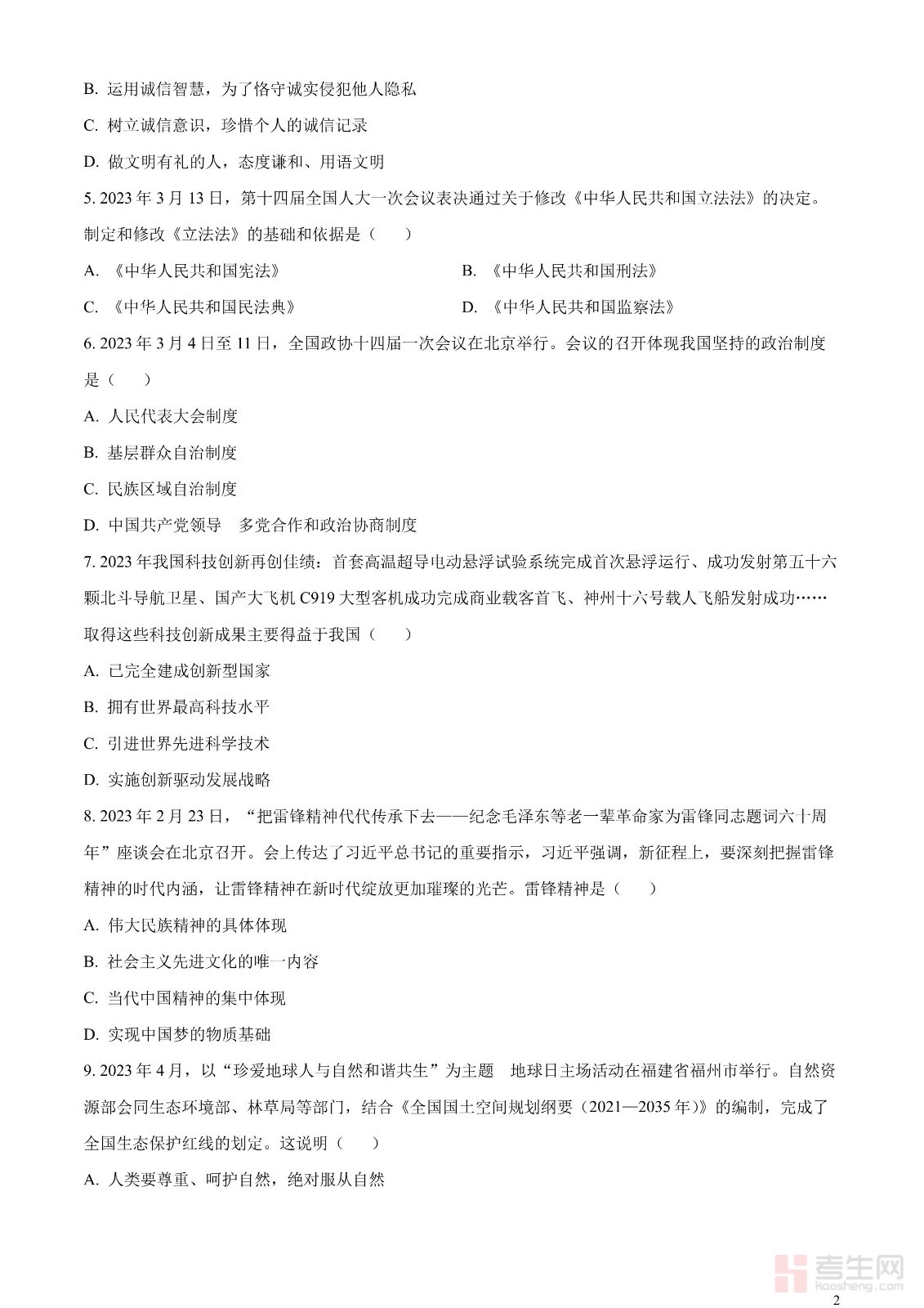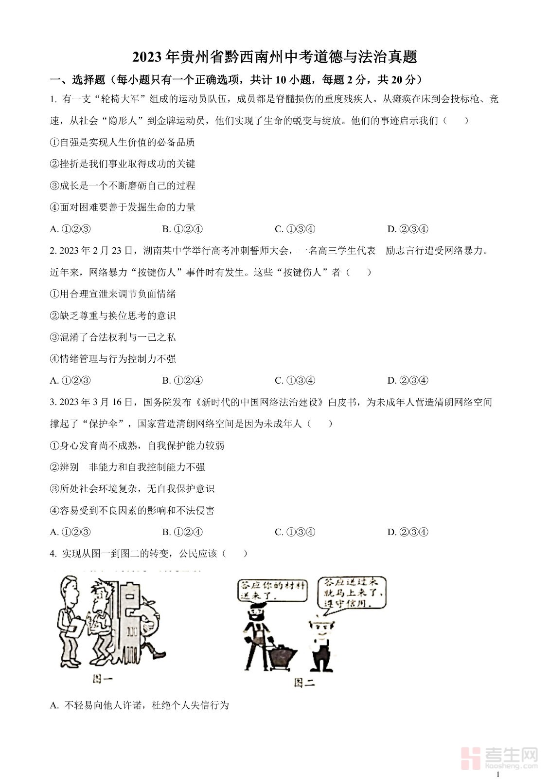 2023年贵州省黔西南州中考道德与法治真题(原卷版)