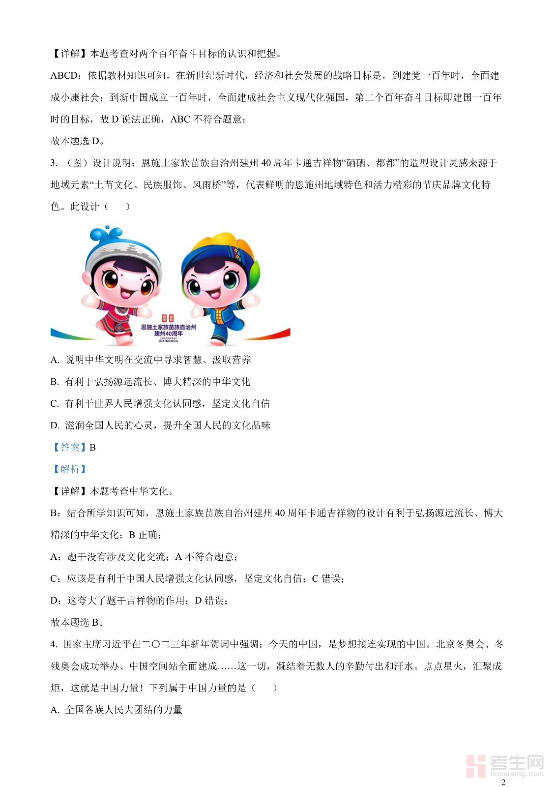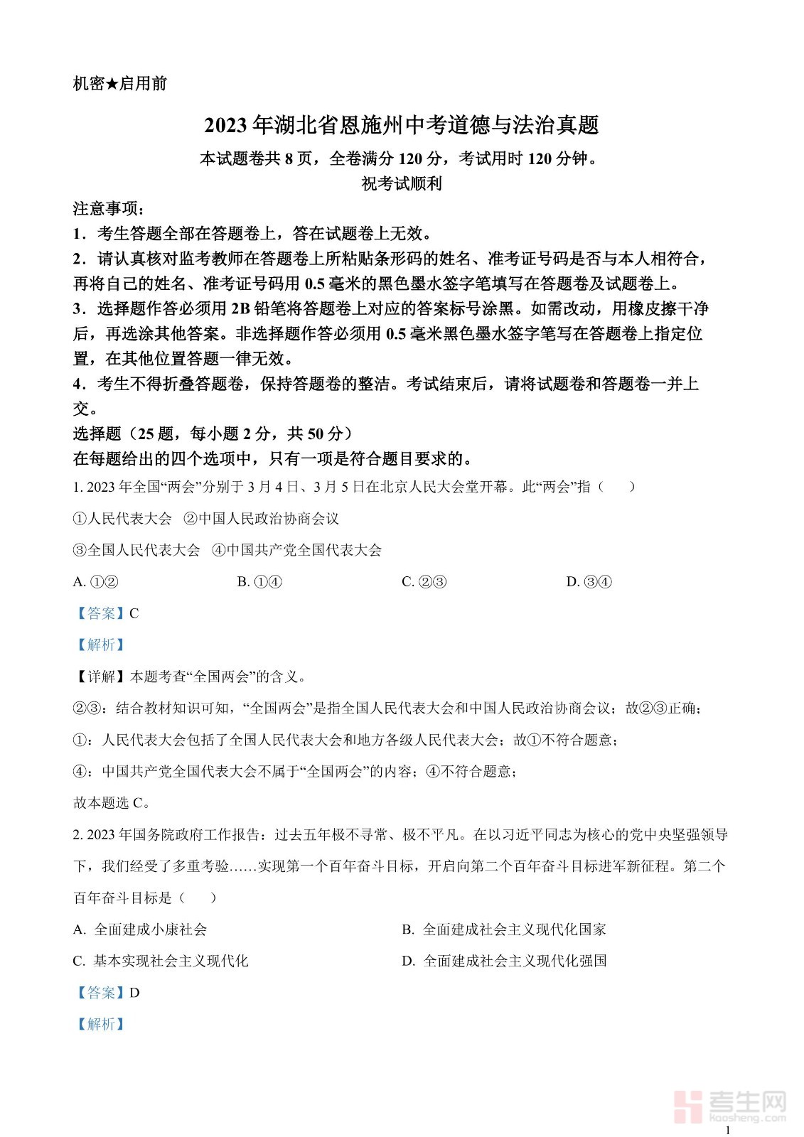 2023年湖北省恩施州中考道德与法治真题(解析版)