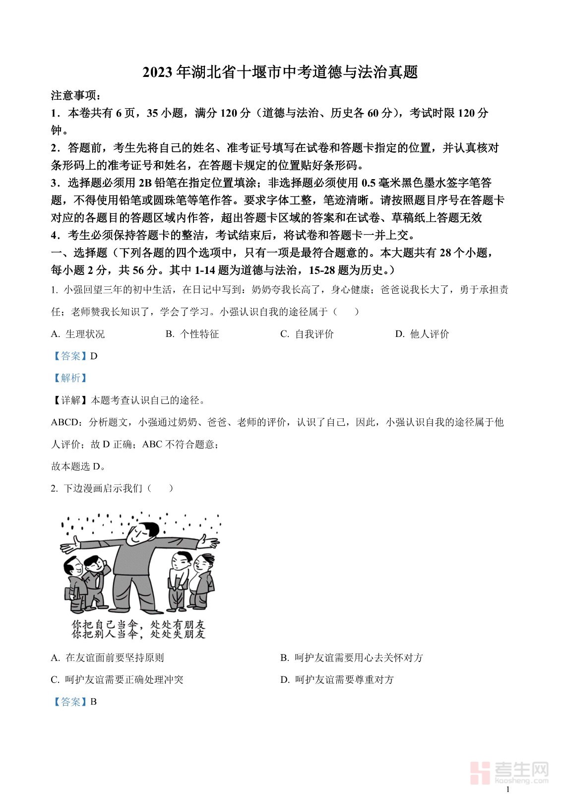 2023年湖北省十堰市中考道德与法治真题(解析版)