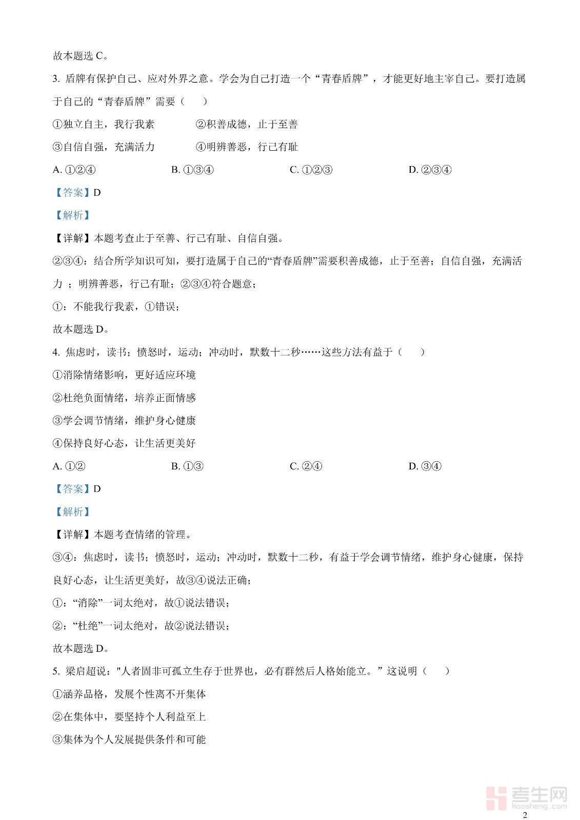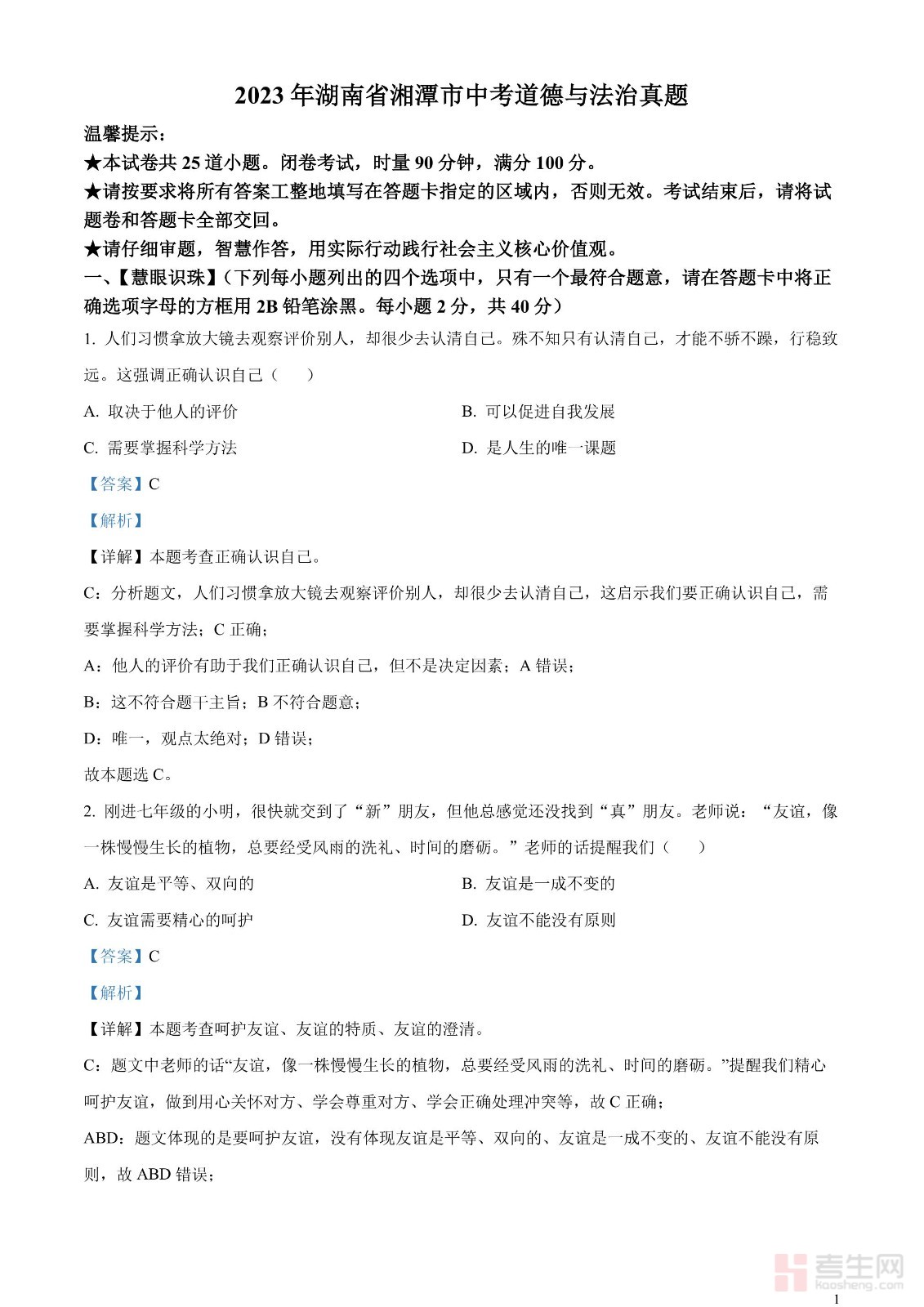 2023年湖南省湘潭市中考道德与法治真题(解析版)