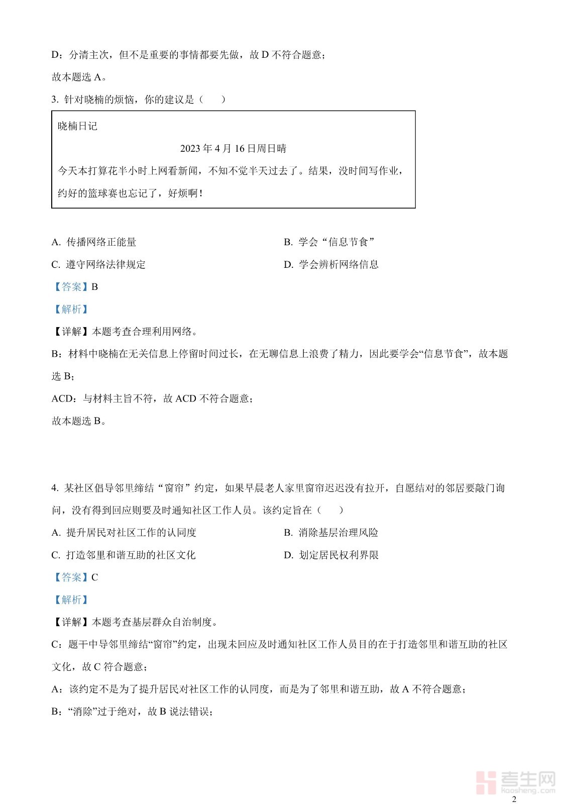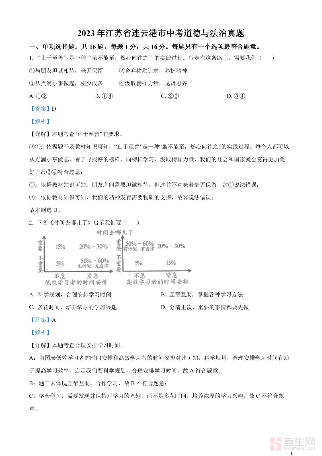 2023年江苏省连云港市中考道德与法治真题(解析版)