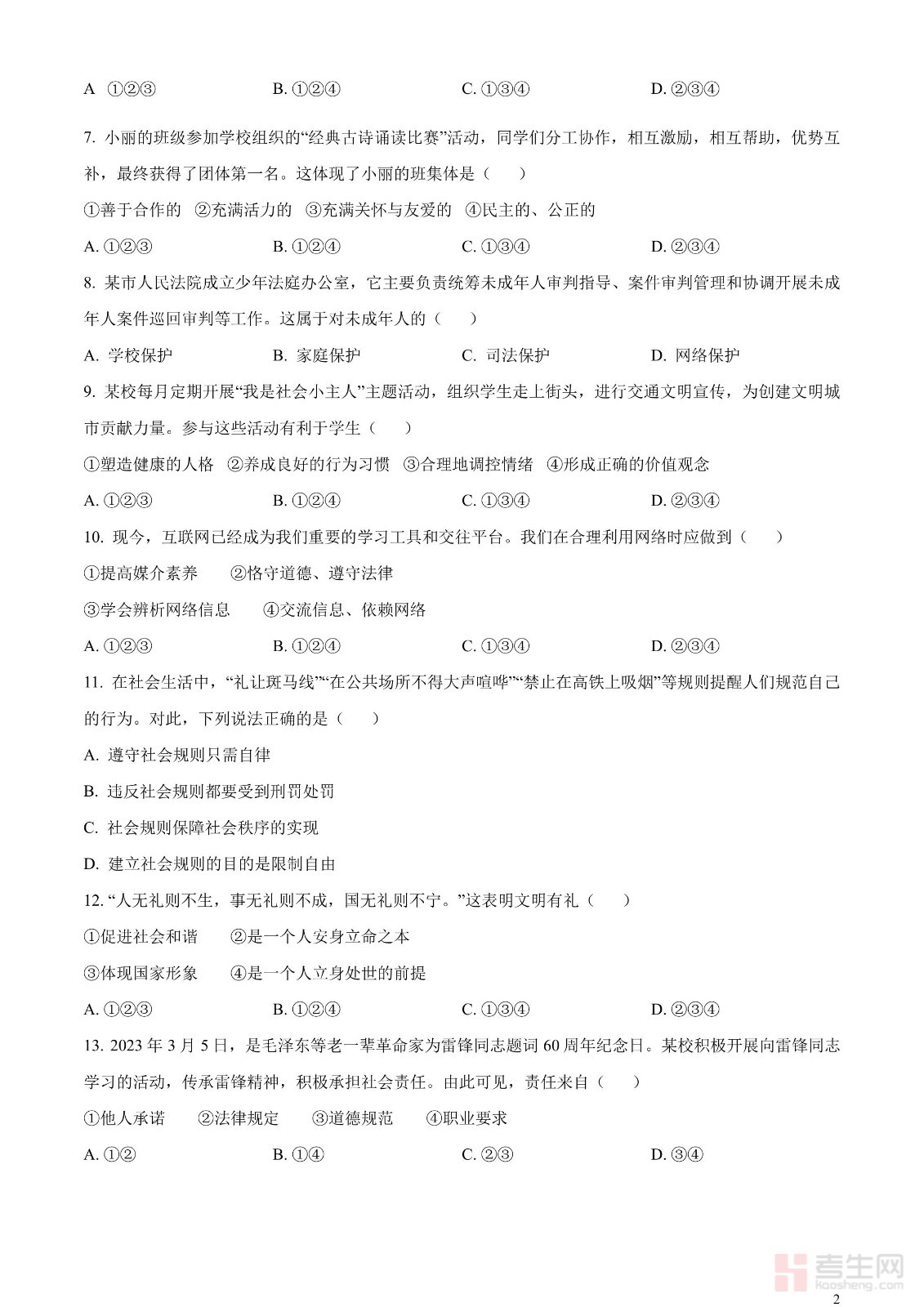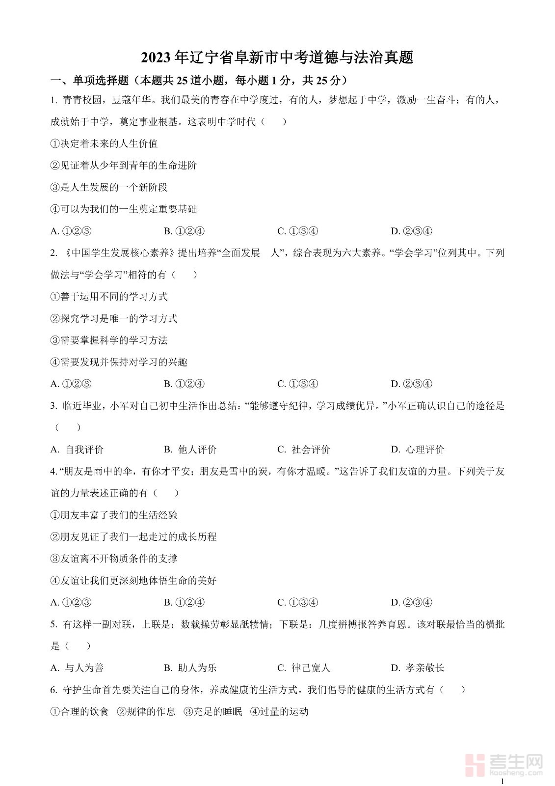 2023年辽宁省阜新市中考道德与法治真题(原卷版)