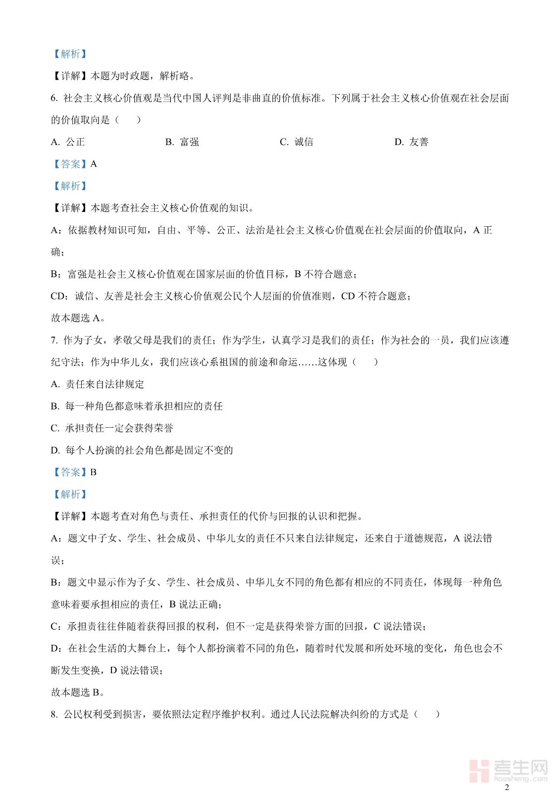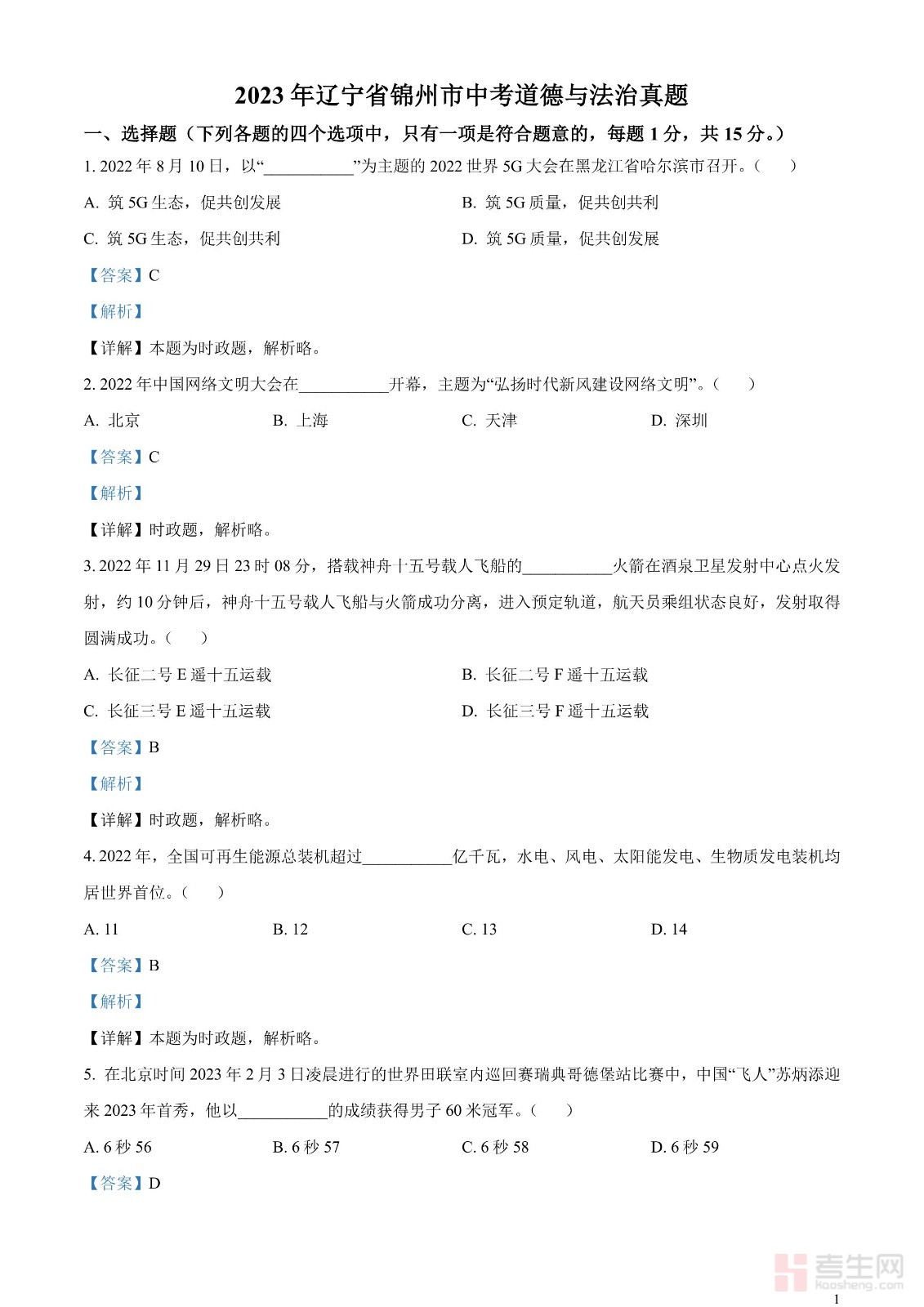 2023年辽宁省锦州市中考道德与法治真题(解析版)