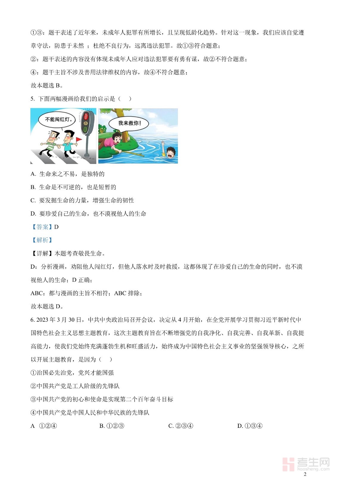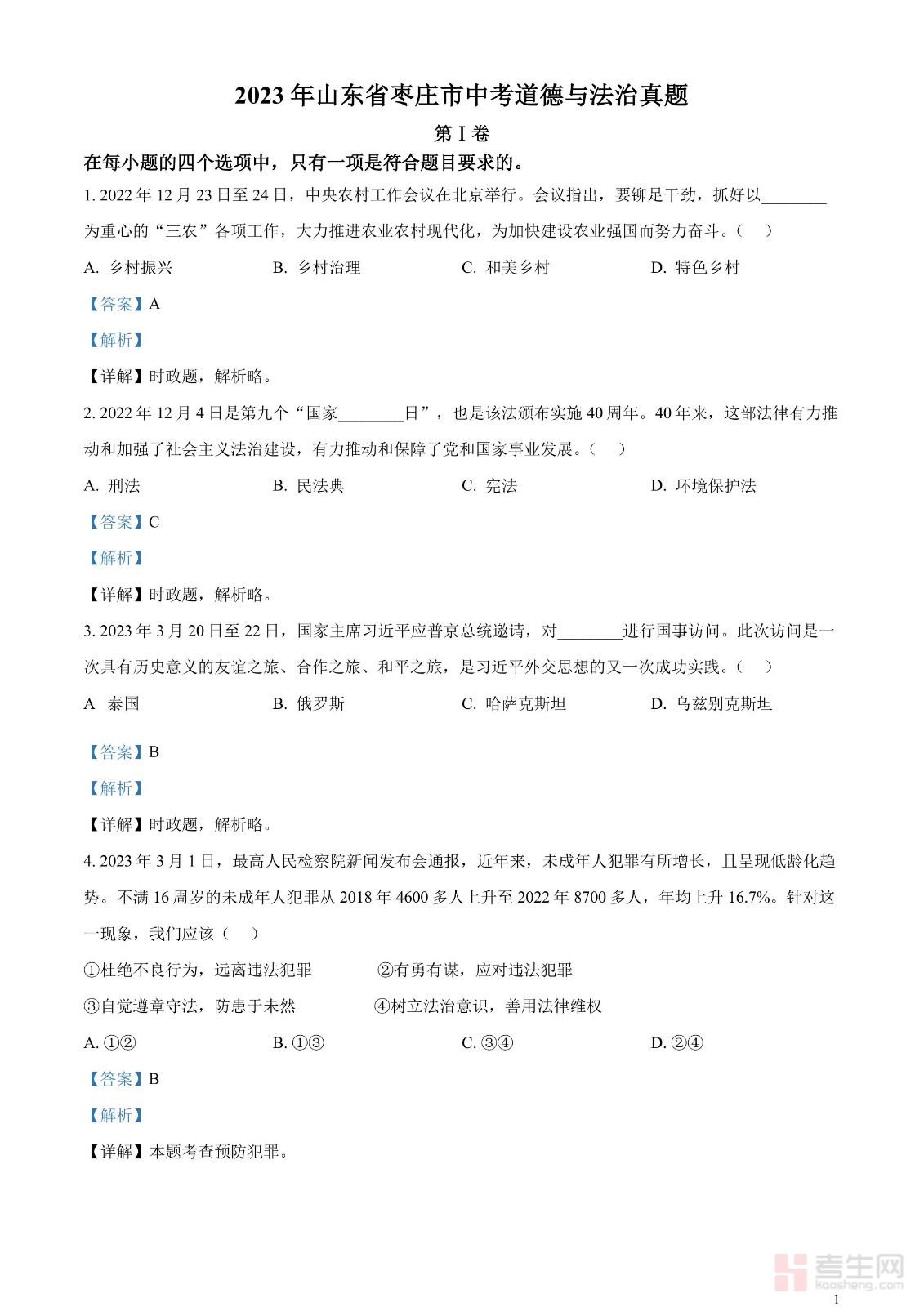 2023年山东省枣庄市中考道德与法治真题(解析版)