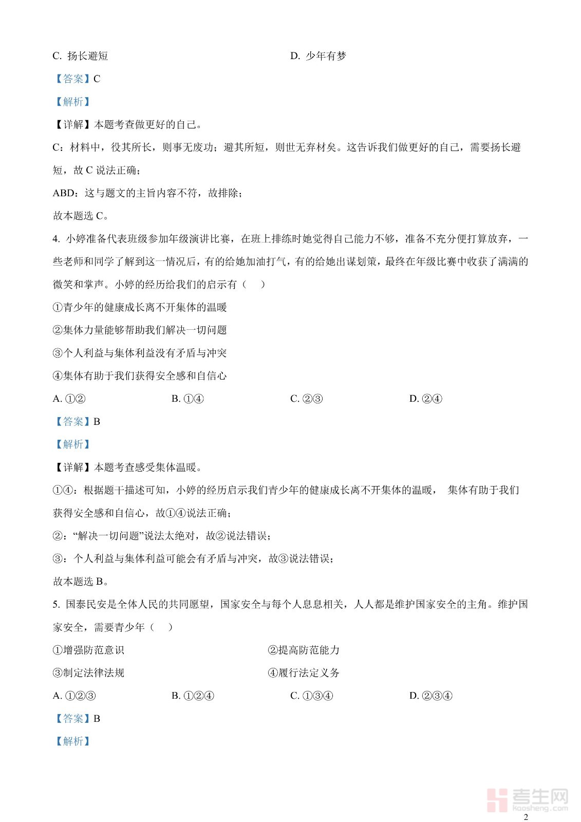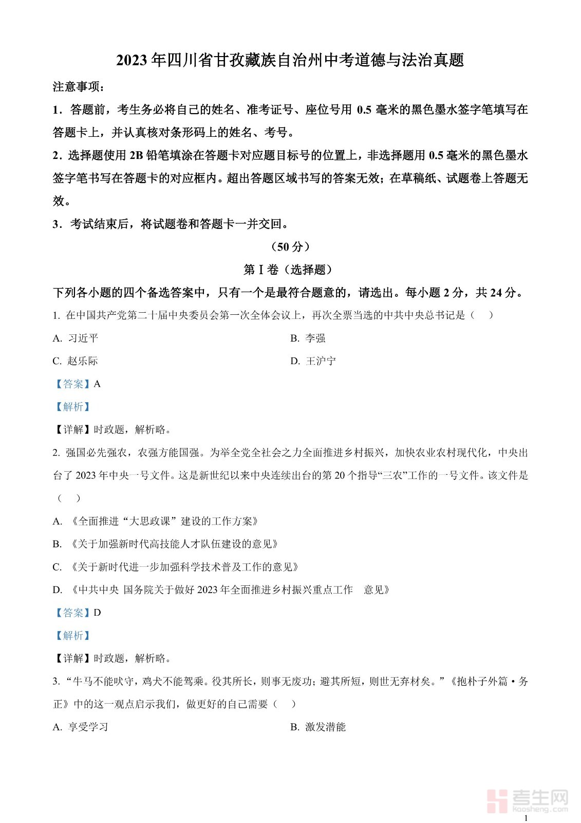 2023年四川省甘孜藏族自治州中考道德与法治真题(解析版)