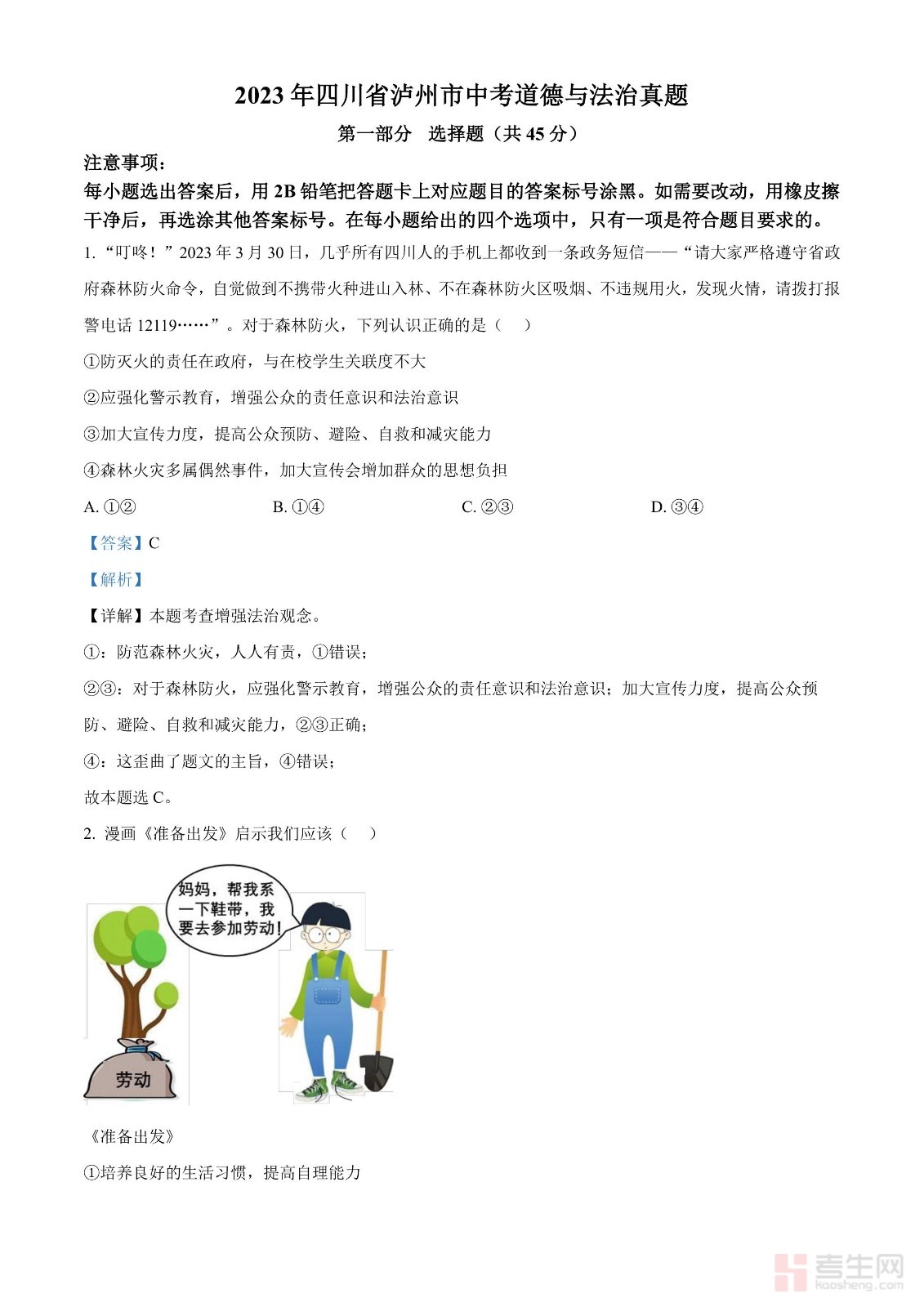 2023年四川省泸州市中考道德与法治真题(解析版)