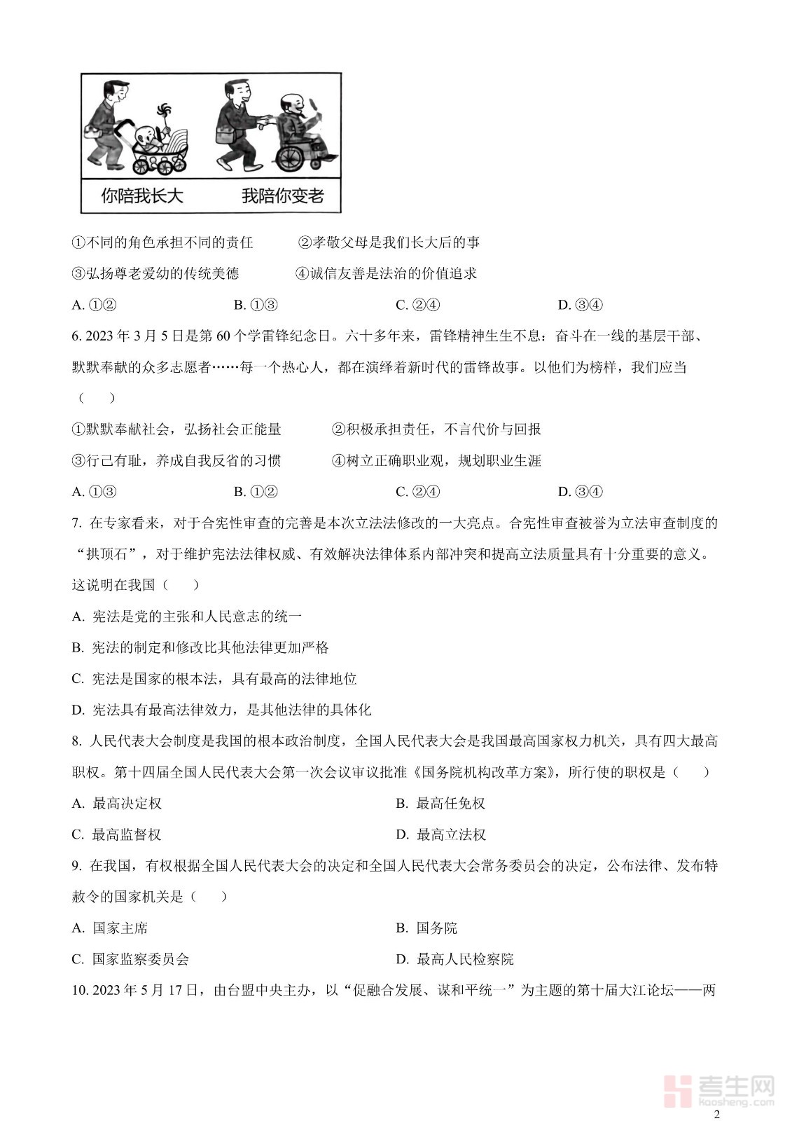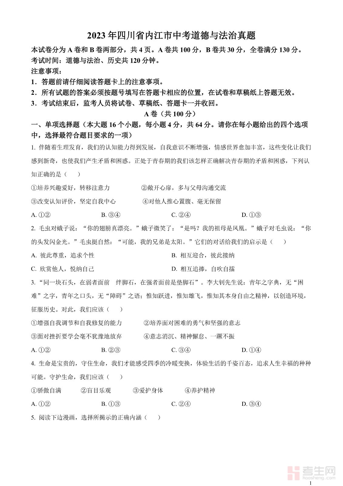 2023年四川省内江市中考道德与法治真题(原卷版)