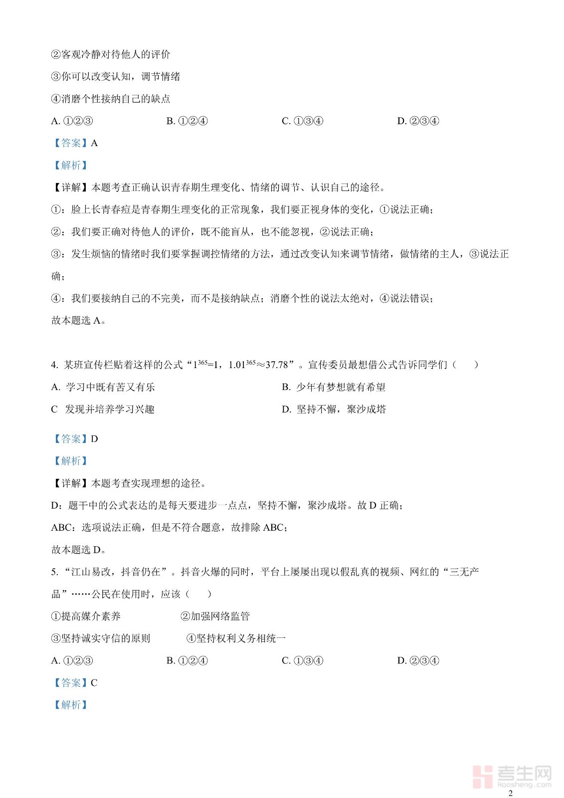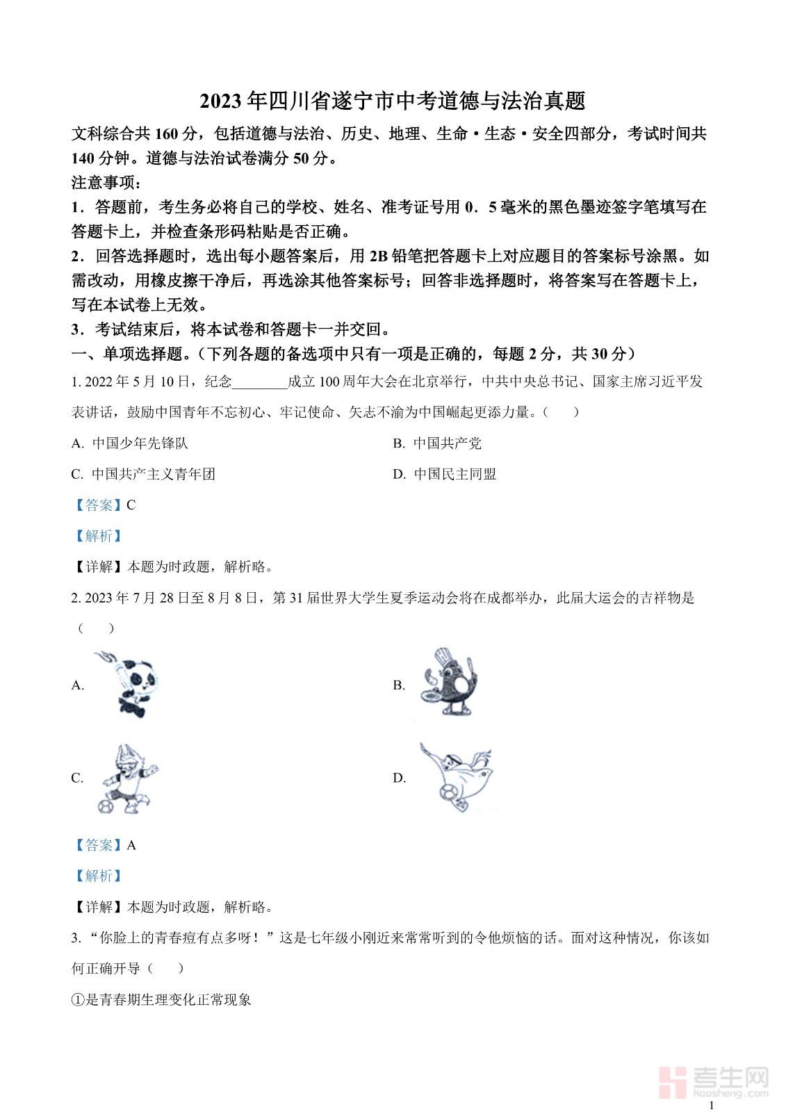 2023年四川省遂宁市中考道德与法治真题(解析版)
