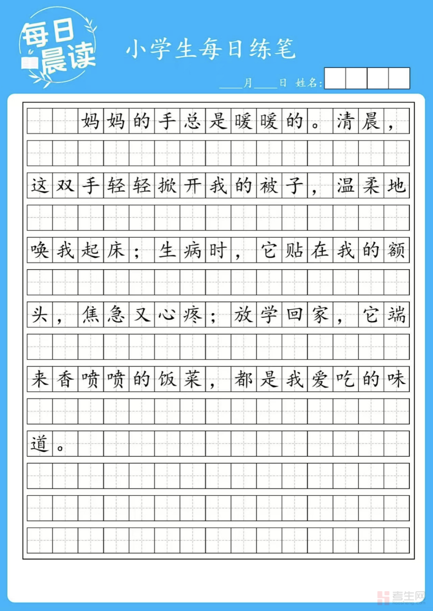 别再错过这份满含温情的优质资料!现在就登录考生网,下载《妈妈的手》晨读 + 练笔资料,让每一段文字都承载掌心的温暖,让每一次练笔都成为对妈妈爱的告白!