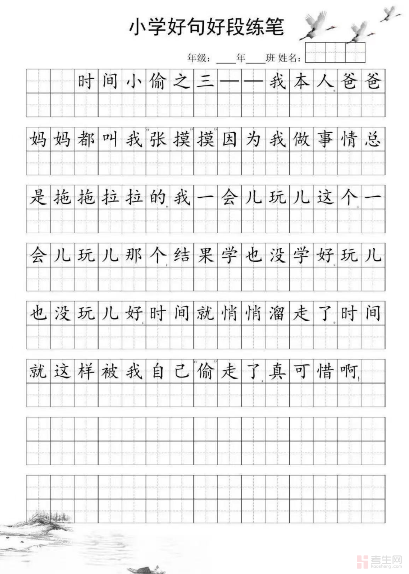 更便捷的是,资料已上传至考生网,下载路径简单便捷:登录考生网,搜索 “《时间小偷》晨读 + 练笔资料”,即可一键获取。你可以在清晨伴着晨光,品读文中关于 “时间小偷” 的故事,开启对一天时间的珍视;也可以在课后或闲暇时光,结合自身经历完成练笔题目,将对时间的思考与感悟付诸文字。坚持每日阅读与练习,不仅能显著提升文字表达能力,更能让你学会用心感受时间的流逝,培养珍惜时间的意识,让写作成为与时间对话、规划生活的美好方式。
