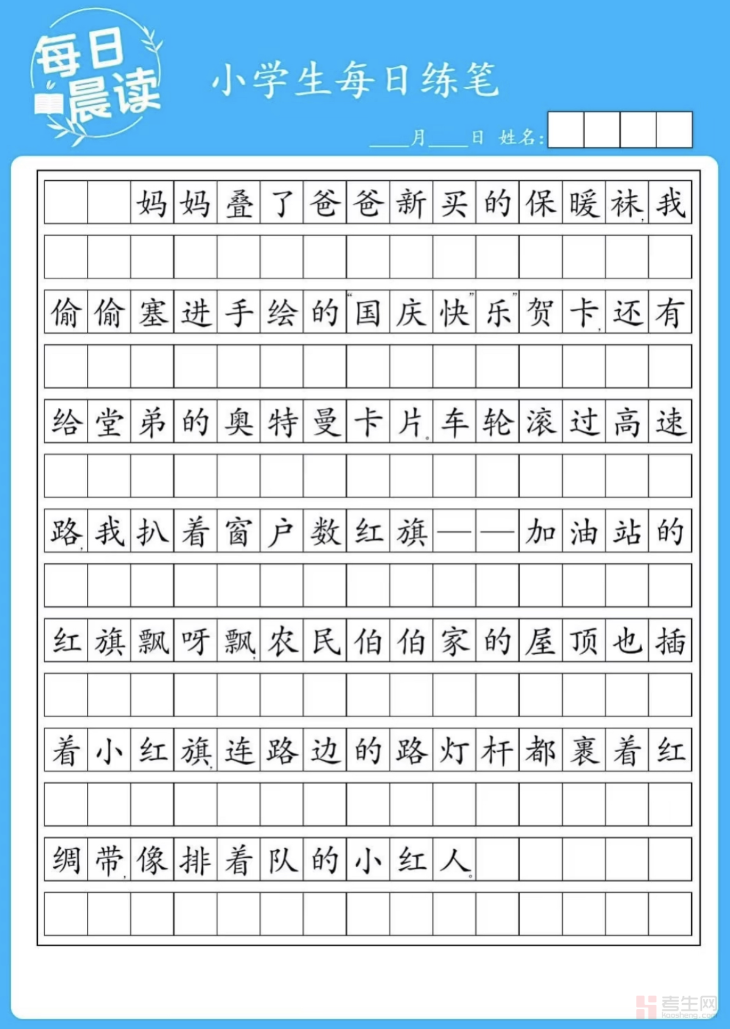 别再错过这份满含节日情怀的优质资料!现在就登录考生网,下载《行李箱里的国庆节》晨读 + 练笔资料,让每一个行李箱都成为故事的载体,让每一次练笔都成为对国庆节的深情告白!