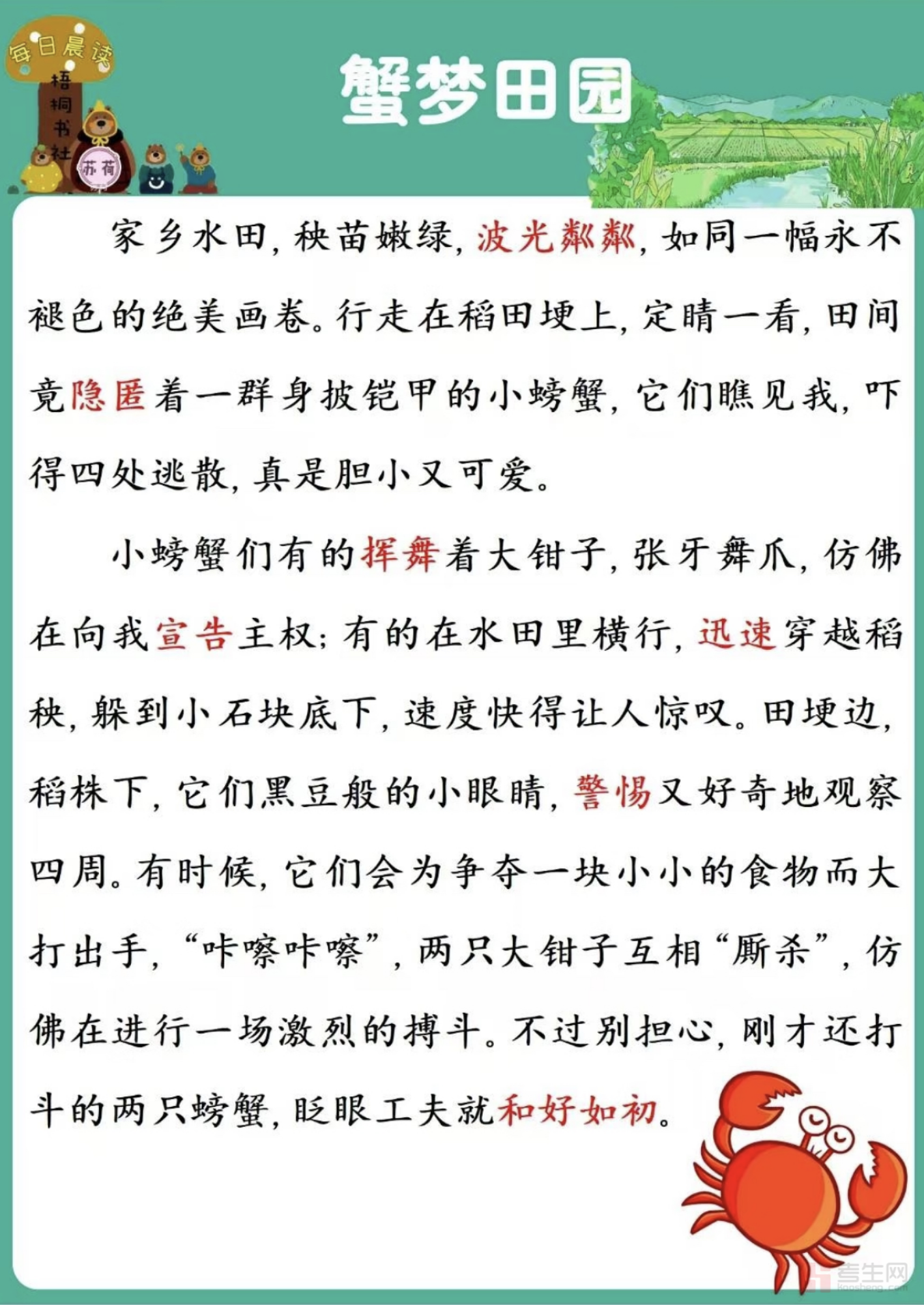 《蟹梦田园》晨读 + 练笔资料,用文字邂逅田园里的蟹趣时光