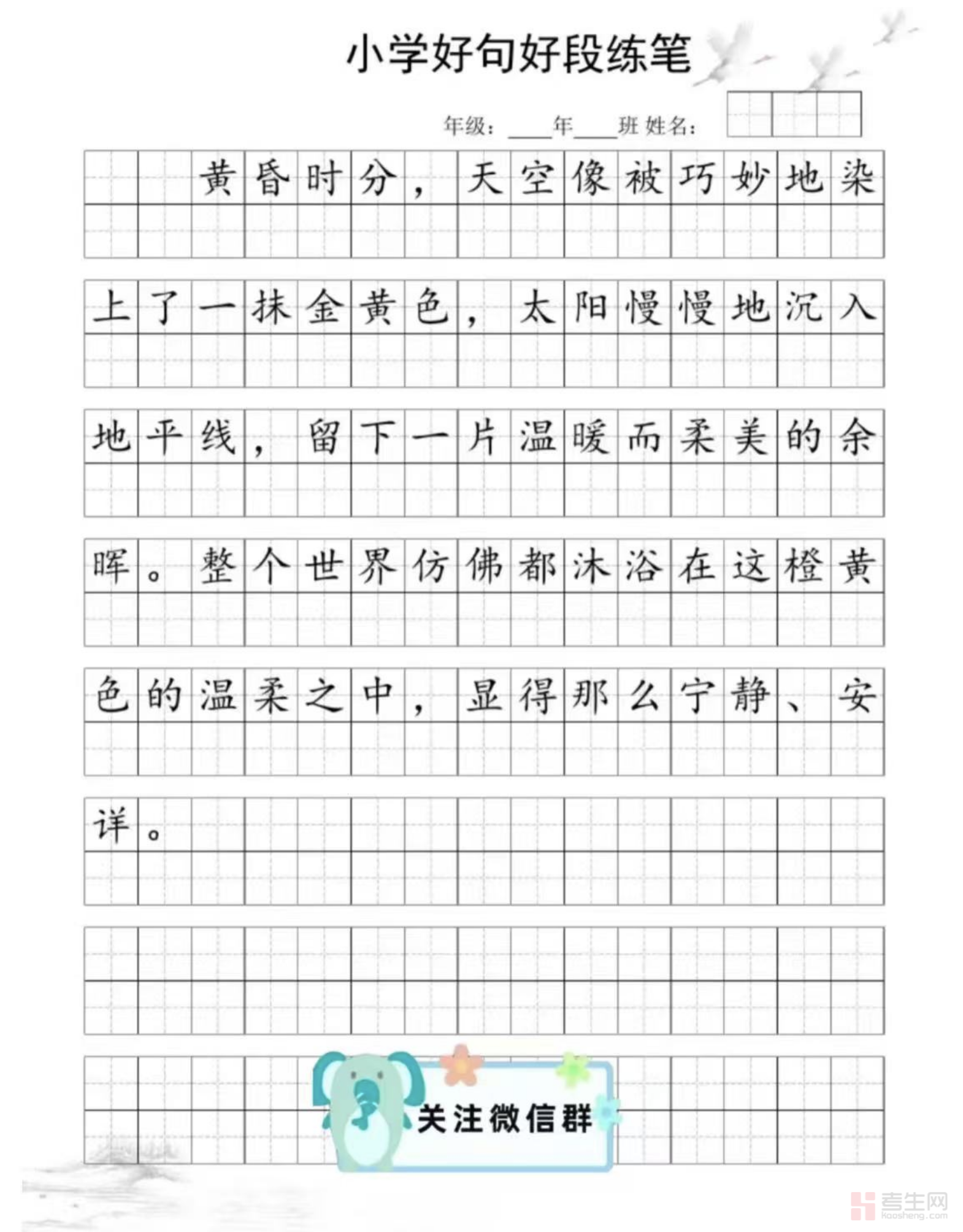 别再错过这份满含暮色温柔与诗意的优质资料!现在就登录考生网,下载《黄昏》晨读 + 练笔资料,让每一段文字都盛满黄昏的浪漫,让每一次练笔都成为与暮色、与美好时光的温柔邂逅!