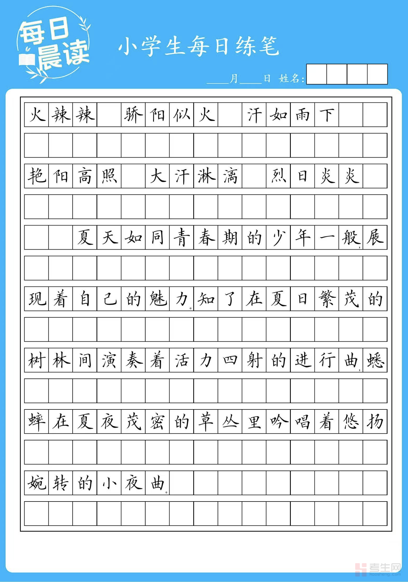 别再错过这份满含盛夏活力与美好记忆的优质资料!现在就登录考生网,下载《夏天》晨读 + 练笔资料,让每一段文字都盛满夏天的热烈与清凉,让每一次练笔都成为与盛夏、与美好时光的温柔邂逅!