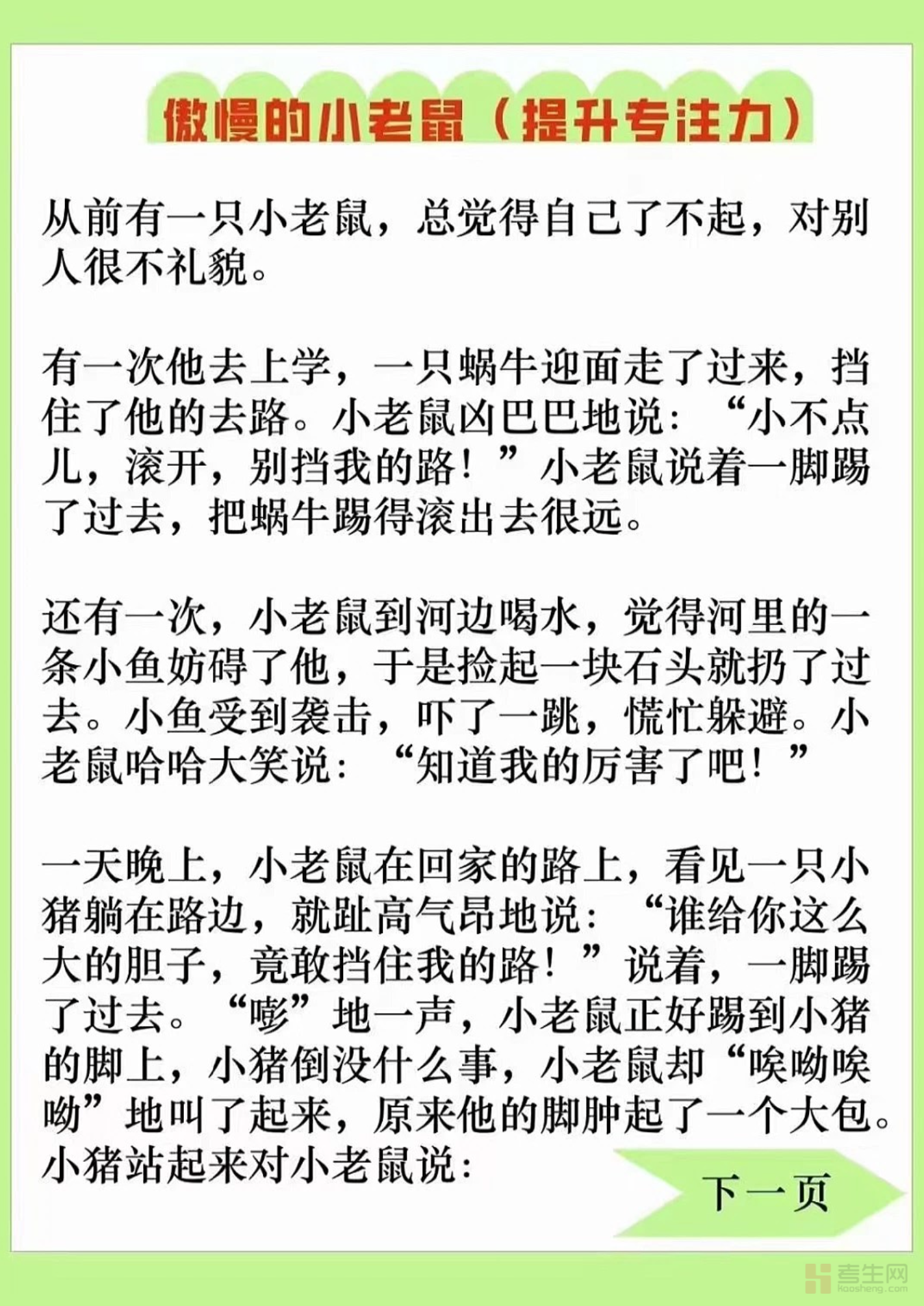 每天一个寓言小故事,引导孩子懂思考,爱思考的能力。不强调认字,强调培育思考的意识,培育孩子的专注力,思维力和学习力。