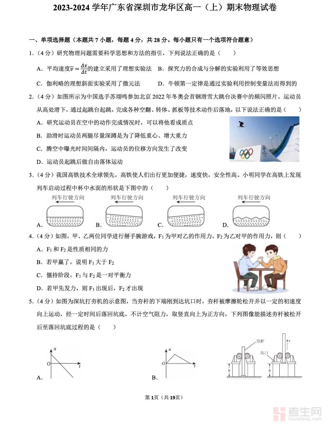 深圳高一物理期末真题 + 精解 ——Soren 老师重磅备考资料