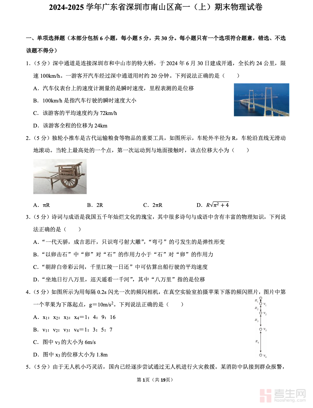 深圳高一物理期末真题 + 精解 ——Soren 老师重磅备考资料