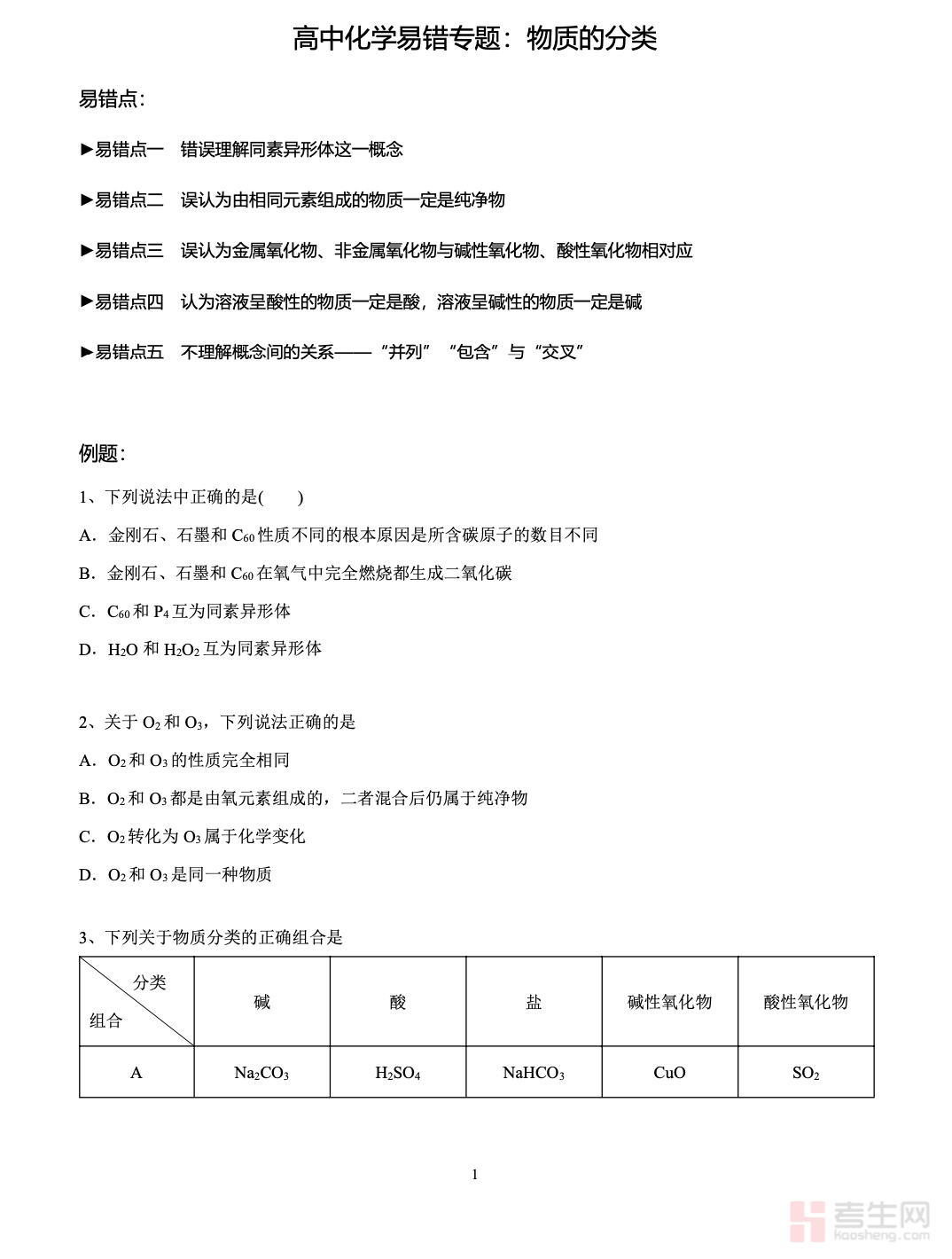 资料包含:物质的分类易错点清单、分类标准拆解、典型错题解析、判断技巧总结直接登录考生网即可免费下载!
