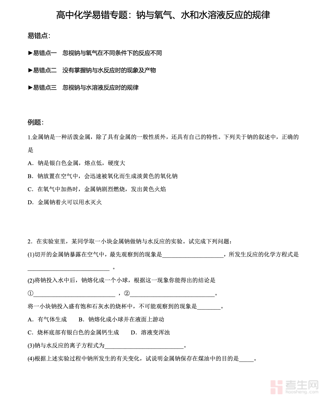 资料包含:钠的反应规律清单、易错反应对比解析、方程式书写模板、计算题型突破直接登录考生网即可免费下载!