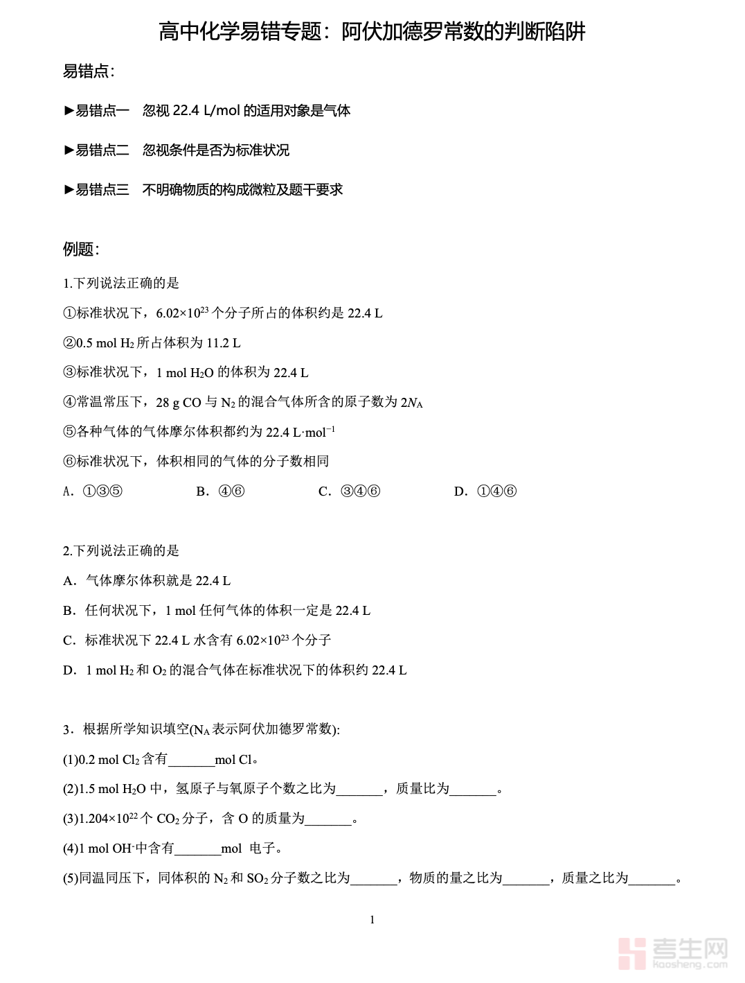 高中化学易错专题 18:阿伏加德罗常数的判断陷阱 ——Soren 老师精准避坑指南