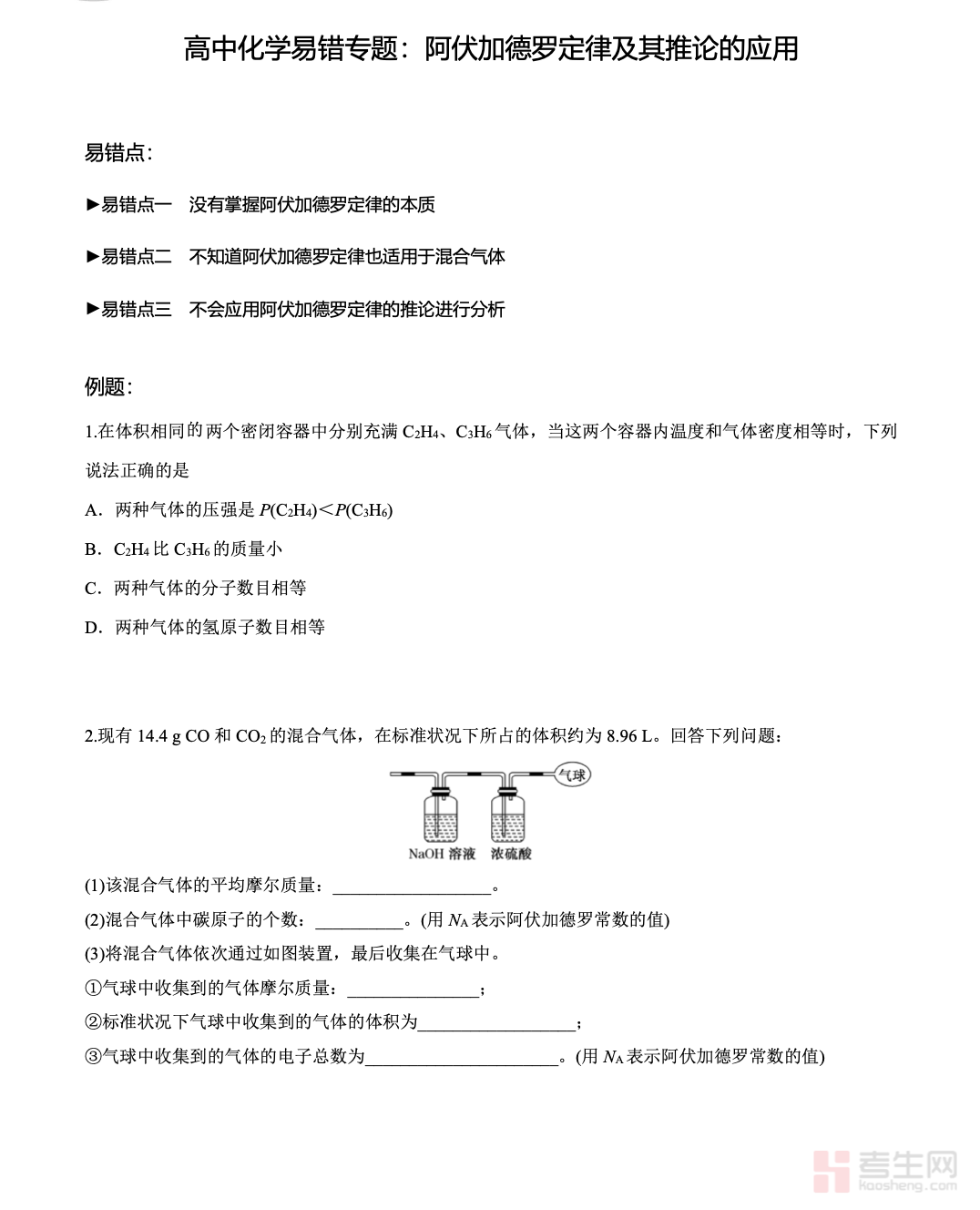资料包含:定律核心要点清单、推论公式推导与应用、易错条件辨析、混合气体计算模板 + 真题练习直接登录考生网即可免费下载!
