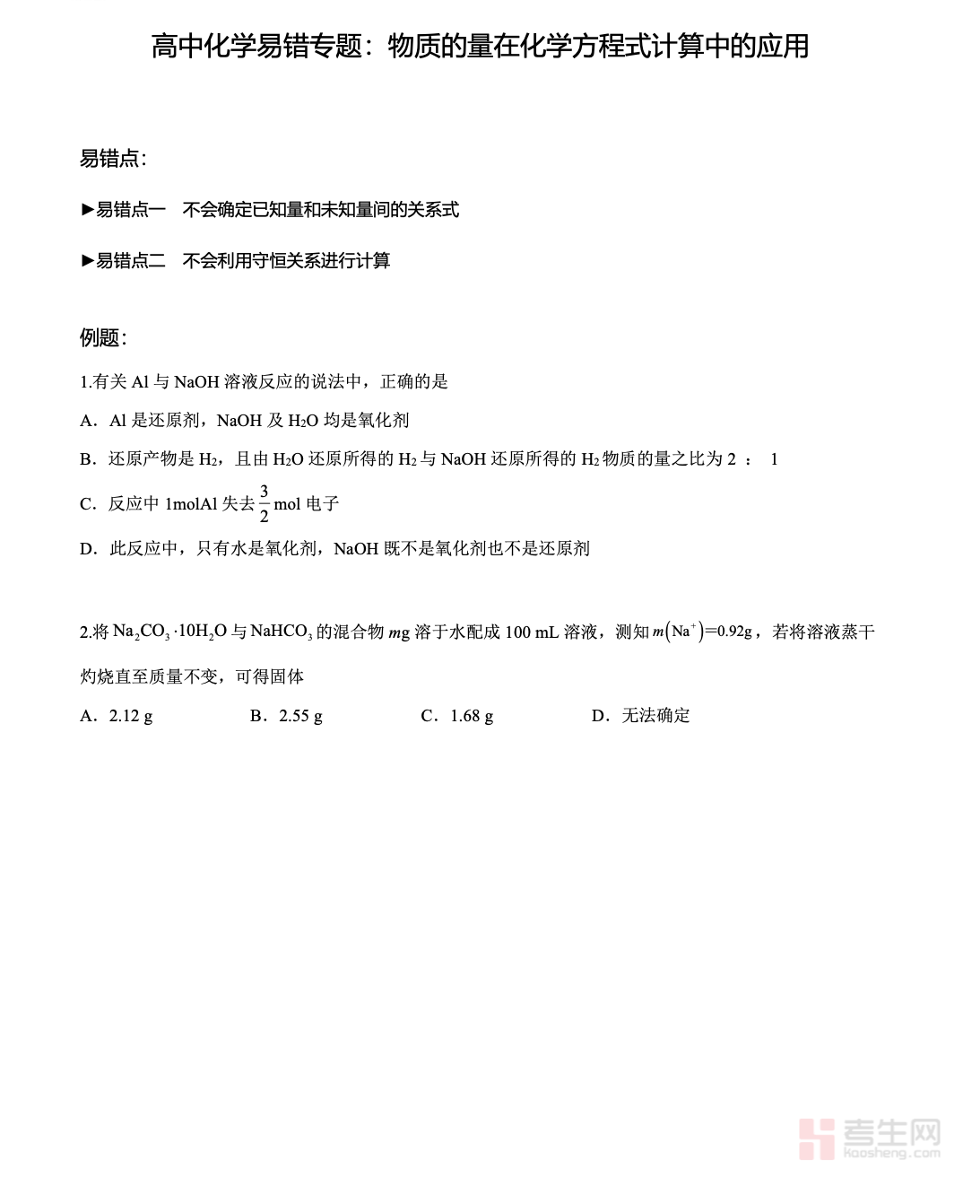 资料包含:化学计量比应用清单、单位换算技巧、过量判断模板、多步反应计算实例、高考真题汇编直接登录考生网即可免费下载!