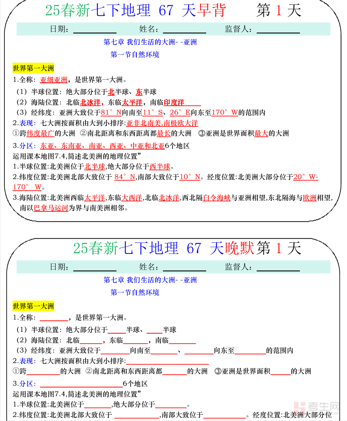 资料全覆盖教材五大核心模块重考点:我们生活的大洲(亚洲)、我们邻近的地区和国家、东半球其他的地区和国家、西半球的国家、极地地区,严格贴合人教版教材编排逻辑,同步课堂学习重点,兼顾区域地理脉络与核心考点。
