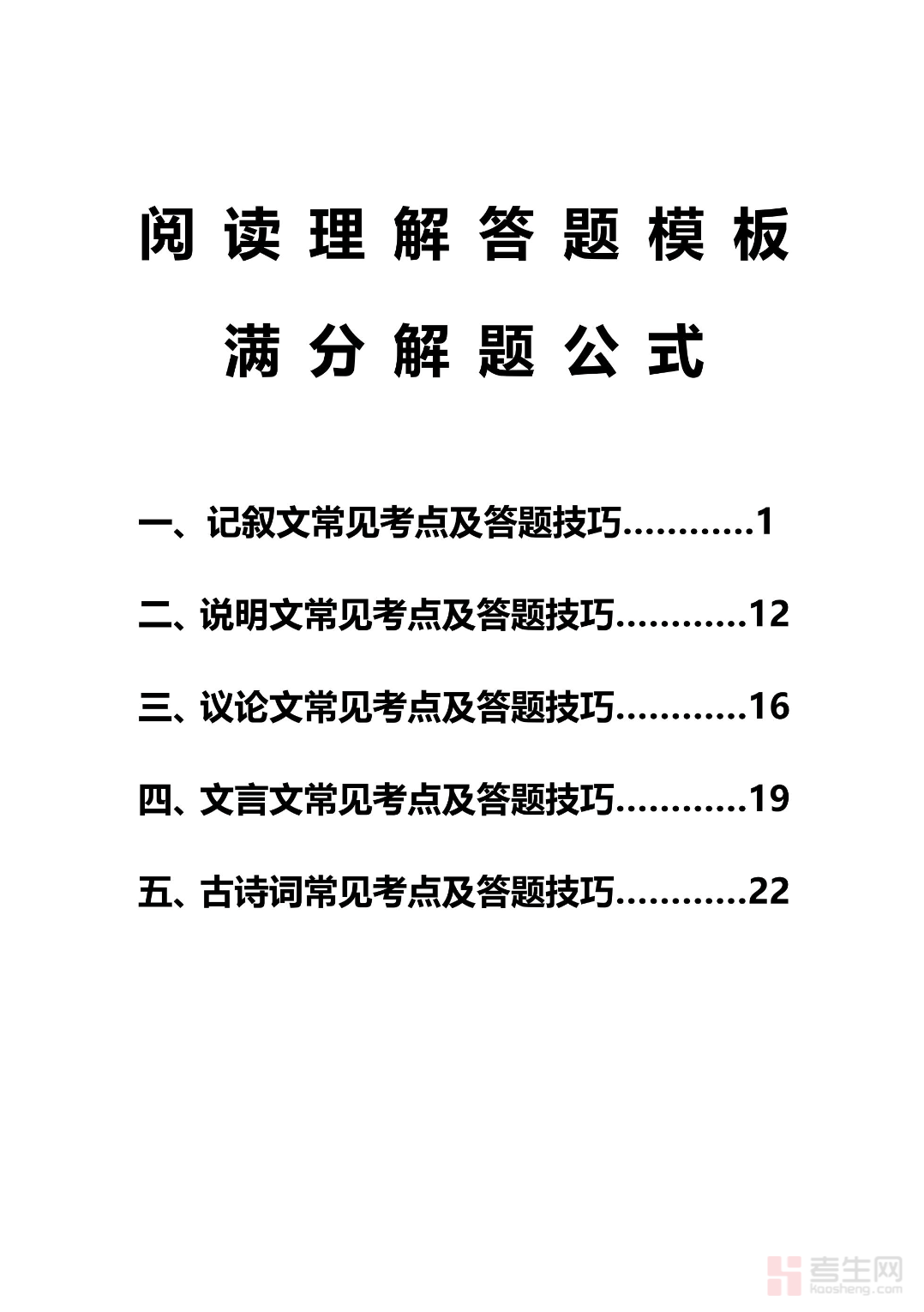 适配初中语文各年级阅读备考,紧扣校内考试及中考阅读考纲要求,整合阅读理解全题型答题模板与满分解题公式,兼顾实用性与应试性,精准破解学生答题痛点,是初中生快速提升阅读答题能力、冲刺阅读满分的必备实用资料。