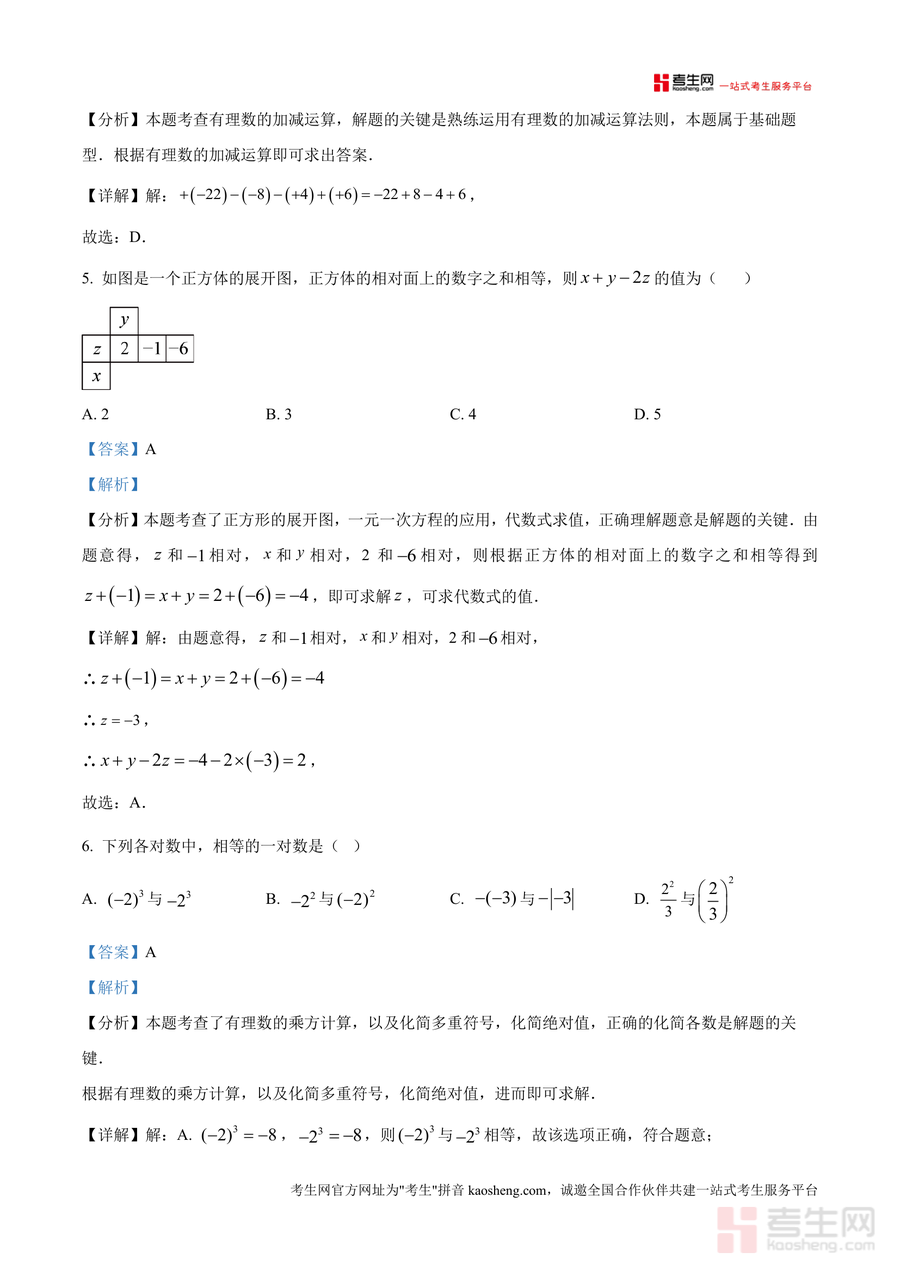 该资料核心用途在于辅助学生完成真题训练后的深度复盘,使用场景覆盖日常课后巩固、考前针对性冲刺及错题专项突破,用户可通过对解析中"有理数大小比较""同类项合并""数轴应用"等高频考点的反复研读,精准把握该校命题方向与难度梯度,备考优势体现在其将抽象知识点转化为具体解题步骤,有效提升学生应试能力,如解答题中的整式化简求值题,解析通过"去括号-合并同类项-代入求值"三步法结合非负数性质应用,让学生快速掌握得分技巧并形成规范答题习惯。