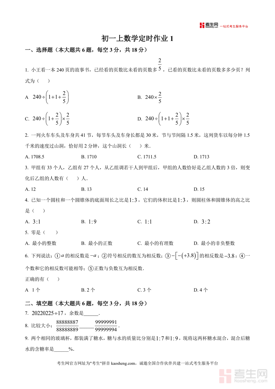 适用人群为七年级上学期学生(尤其是目标重庆十八中或同类重点中学者)及数学教师。这份资料必要性在于填补了针对该校阶段性作业的优质备考资源空白;不可替代性体现在原卷版保留了该校真实作业的题型结构与难度设置,让学生获得最贴近实际教学的练习体验;长期价值则在于帮助学生建立系统的数学知识体系与解题思维框架,为后续学习奠定坚实基础。
