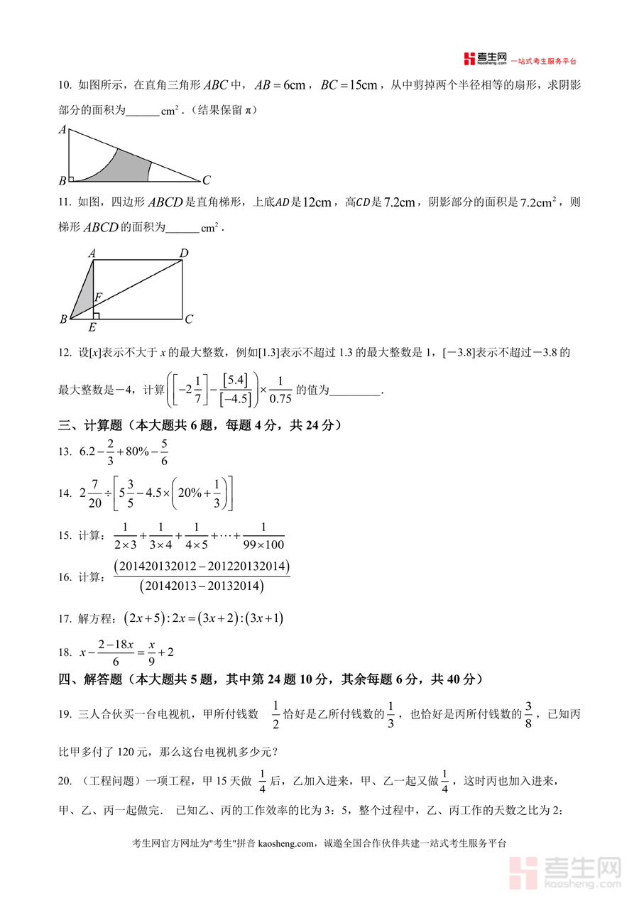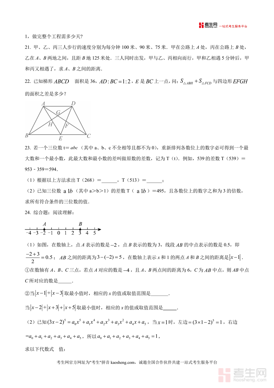 《精品解析:重庆市第十八中学2024-2025学年七年级上学期定时作业(一)数学试题(原卷版)》是一份针对初一上学期数学阶段性学习的优质备考资料,聚焦代数基础、几何初步及实际应用三大核心模块。试题涵盖选择题、填空题、计算题及解答题四大题型,内容包括相反数概念辨析、一元一次方程求解、梯形与扇形面积计算、工程与行程应用题等知识点,全面贴合重庆十八中教学进度与考查重点。其特色在于题型设置梯度合理,既包含基础概念题(如零是非负整数判断),也有综合性较强的压轴题(如差数T(t)定义及应用),能有效反映学生阶段性知识掌握情况。
