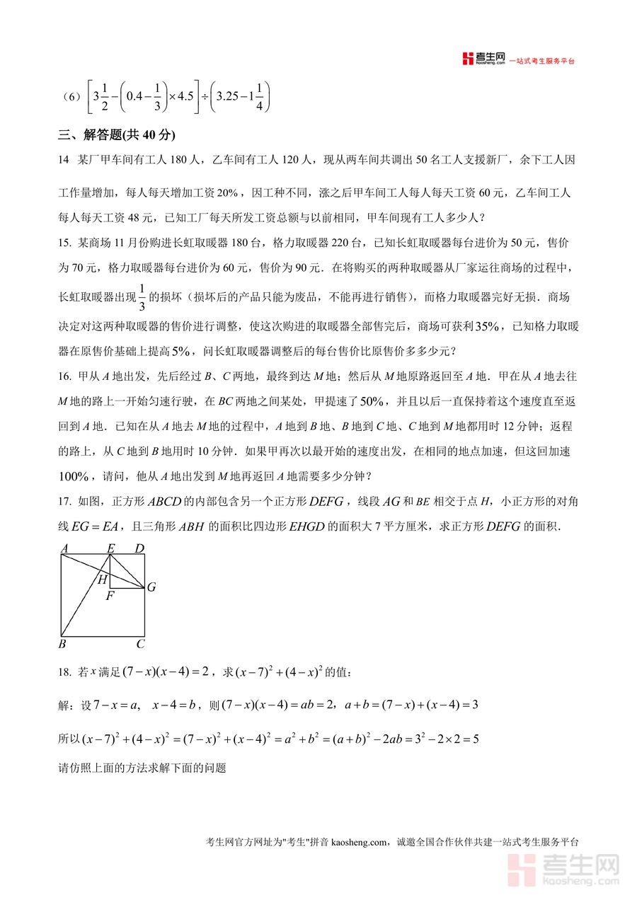 该资料核心用途为帮助学生提前熟悉育才中学入学考试的命题规律与题型特点,使用场景包括小学毕业生暑假自主备考自测、培训机构针对性辅导练习、家长辅助孩子进行入学前知识巩固。用户通过完成试卷可精准定位自身知识薄弱环节,如应用题中的逻辑分析能力、几何题中的空间想象能力等;其备考优势在于依托该校真实考试原卷编制,能有效提升学生的应试能力,减少考试陌生感,为入学后的学习节奏适应奠定基础。