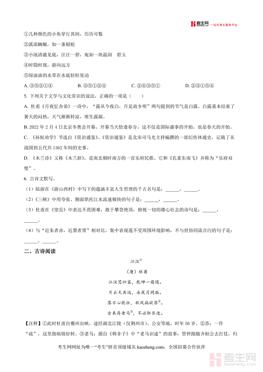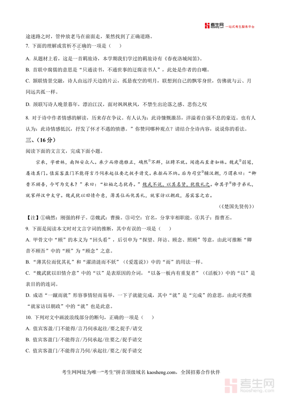 本资料适用人群主要为长沙市师大附中博才实验中学及周边学校八年级学生、初中语文教师及关注孩子语文成绩提升的家长;作为名校最新开学考原卷,它具有不可替代性——不仅能帮助学生快速适应新学期学习节奏,更能长期助力学生建立系统知识框架与科学应试思维,是八年级学生提升语文综合素养与考试成绩的必要工具之一.