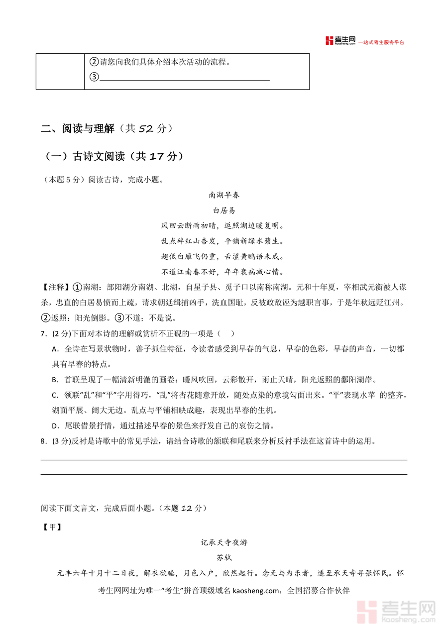 该资料核心用途在于帮助学生熟悉第一次月考的题型结构与难度梯度,适用于课堂检测、课后自主练习及考前模拟训练等场景;通过真实还原月考考试流程(120分满分/150分钟时长),让学生提前适应考试节奏,提升应试能力;其题目设计紧扣教材高频考点,如古诗文默写、病句诊断等,能有效暴露知识薄弱点,为针对性复习提供依据,助力学生高效备战月考。