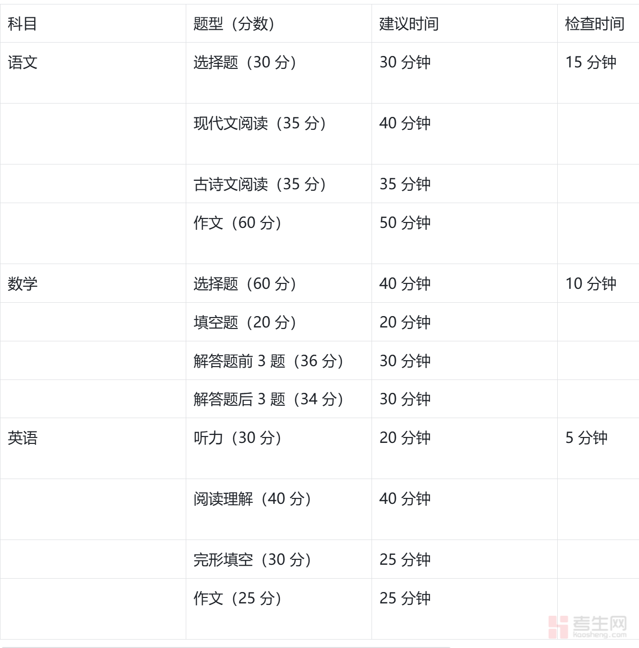考场 “时间分配表”:按 “分数占比” 定时间,避免 “会做的题没时间做”(细化版)