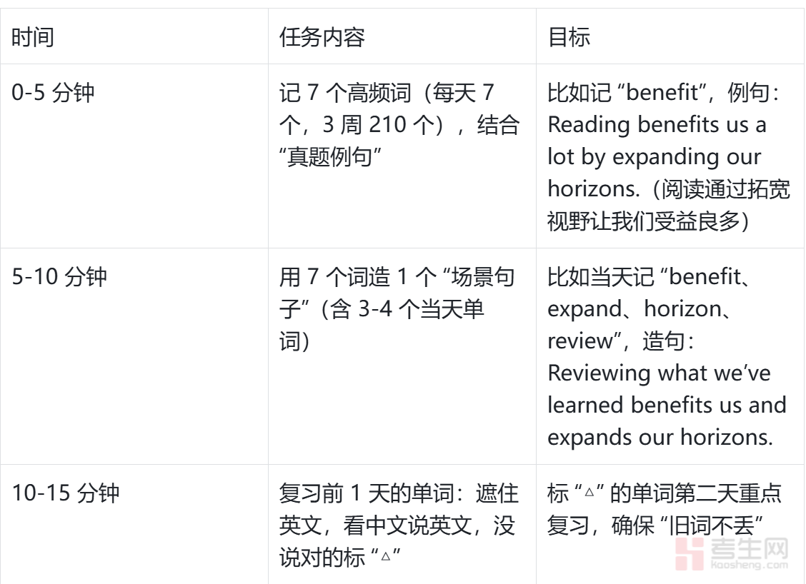 误区 1:“每天记 20 个词,贪多求快”,导致 “记了又忘”。正确做法:每天 7 个,重点是 “记熟、会用”,21 天 210 个,比 “每天 20 个遗忘率 80%” 效果好。