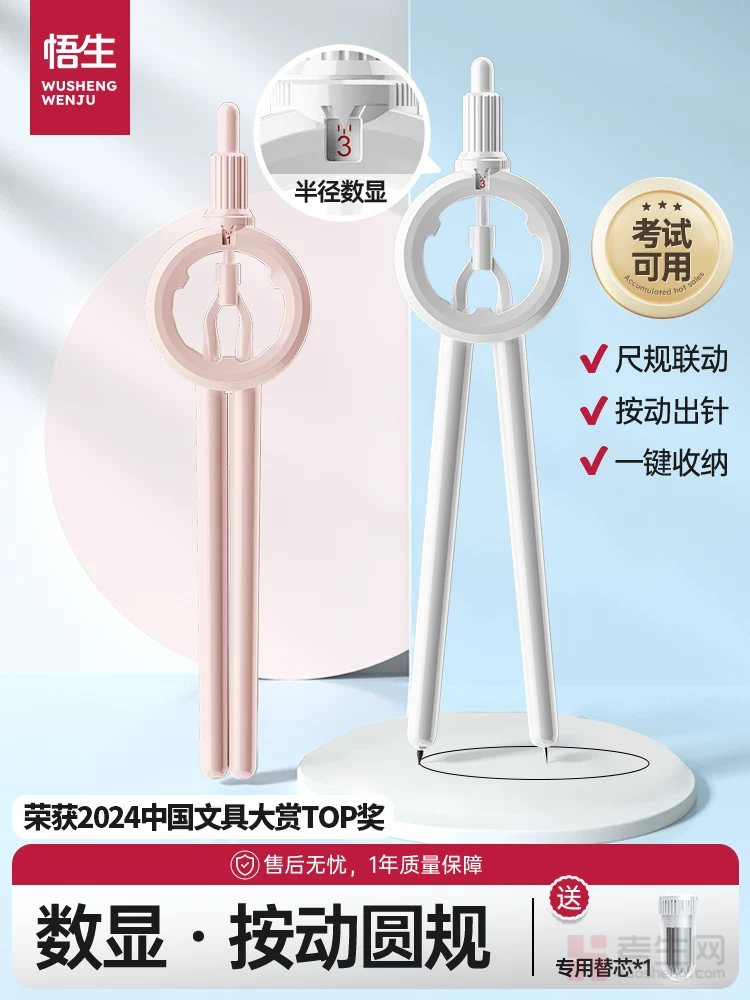 悟生数显按动圆规考试专用学生用专业绘图尺规套装初中生高中创意高颜值多功能笔式笔形带刻度小学生安全制图
